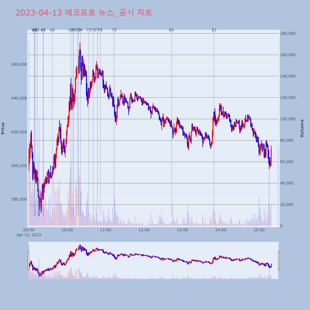 | 9 | 13일, 기관 코스닥에서 에코프로(-5.16%), 셀트리온헬스케어(+2.38%) 등 순기관 투자자는 13일 코스닥에서 에코프로, 셀트리온헬 | 한경/증권 | 에코프로 | 2023-04-13 18:35:20 |