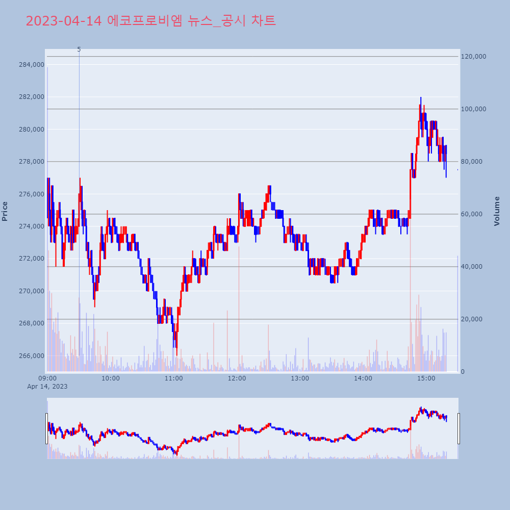 | 5 | [특징주] 코스닥 대장주 에코프로비엠, 다시 상승세컨슈머타임스=전은정 기자 | 에코프로그룹주가 다시 상승 | 컨슈머타임스 | 에코프로 | 2023-04-14 09:30:15 |