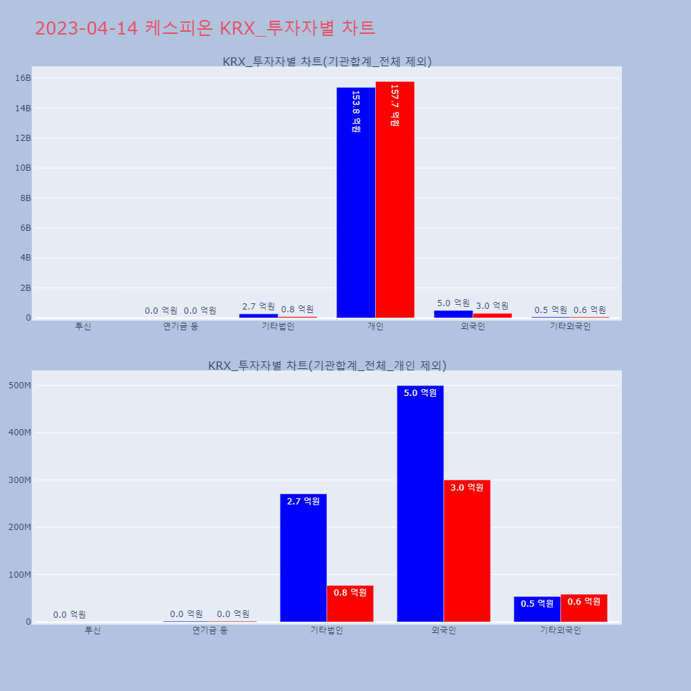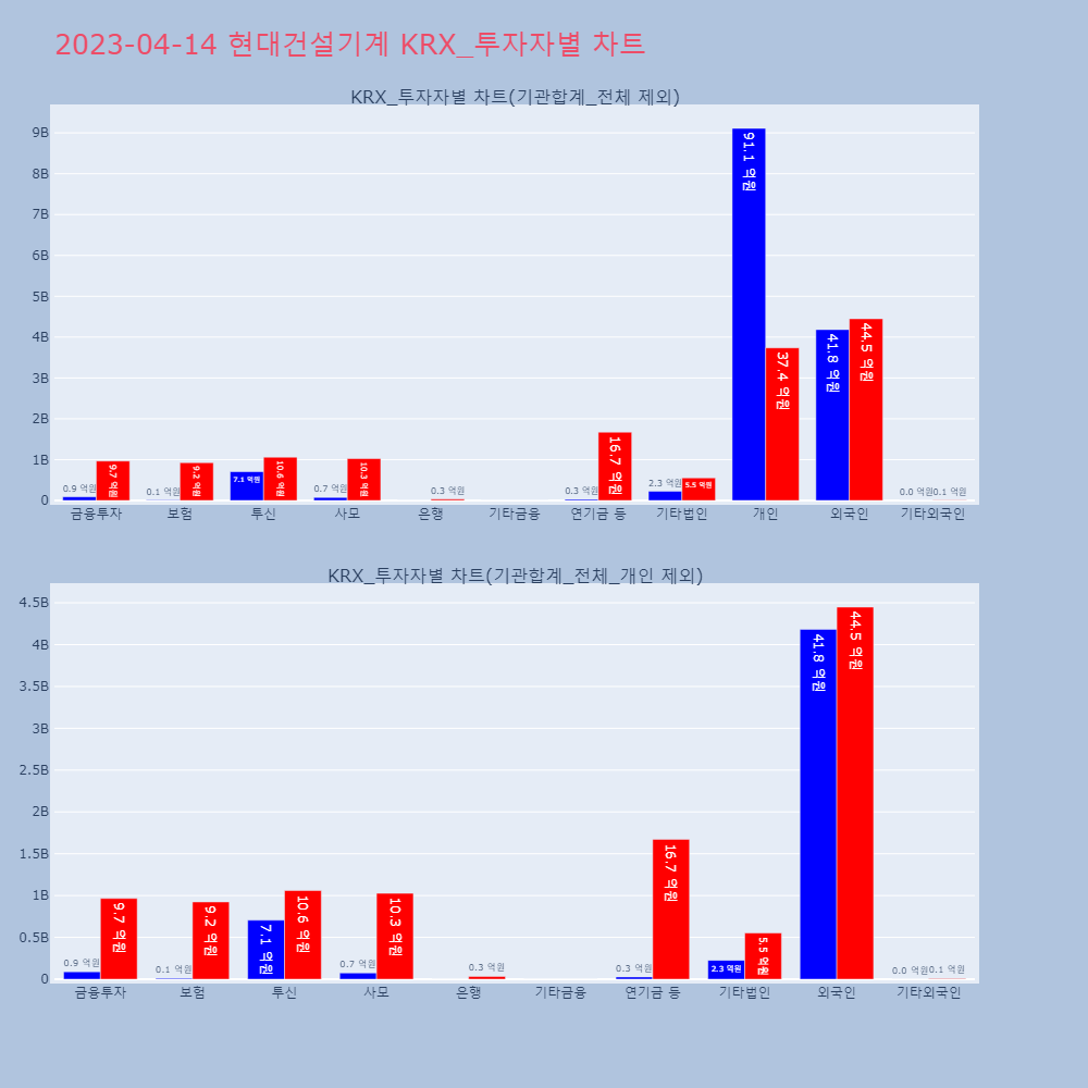| 투자기관 | 매도량/금액(백) | 매수량/금액(백) | 순매수량/금액(백) |