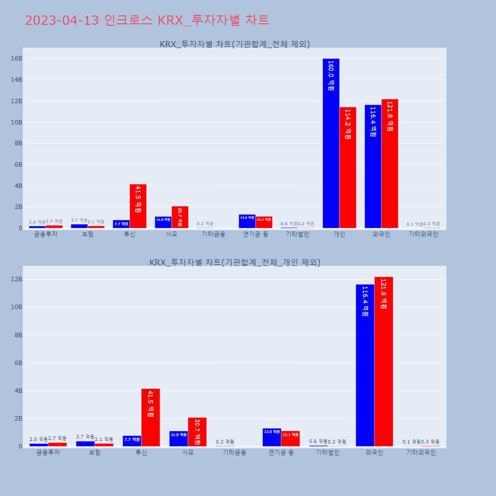 | 투자기관 | 매도량/금액(백) | 매수량/금액(백) | 순매수량/금액(백) |