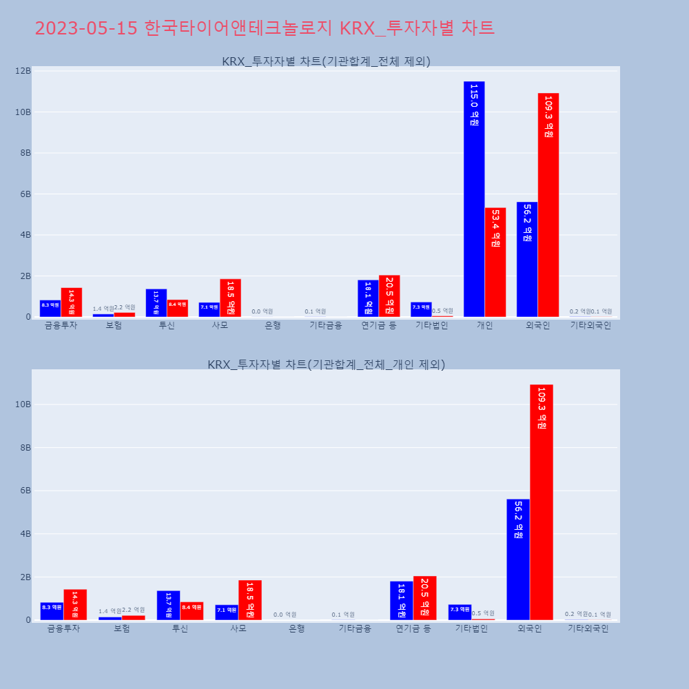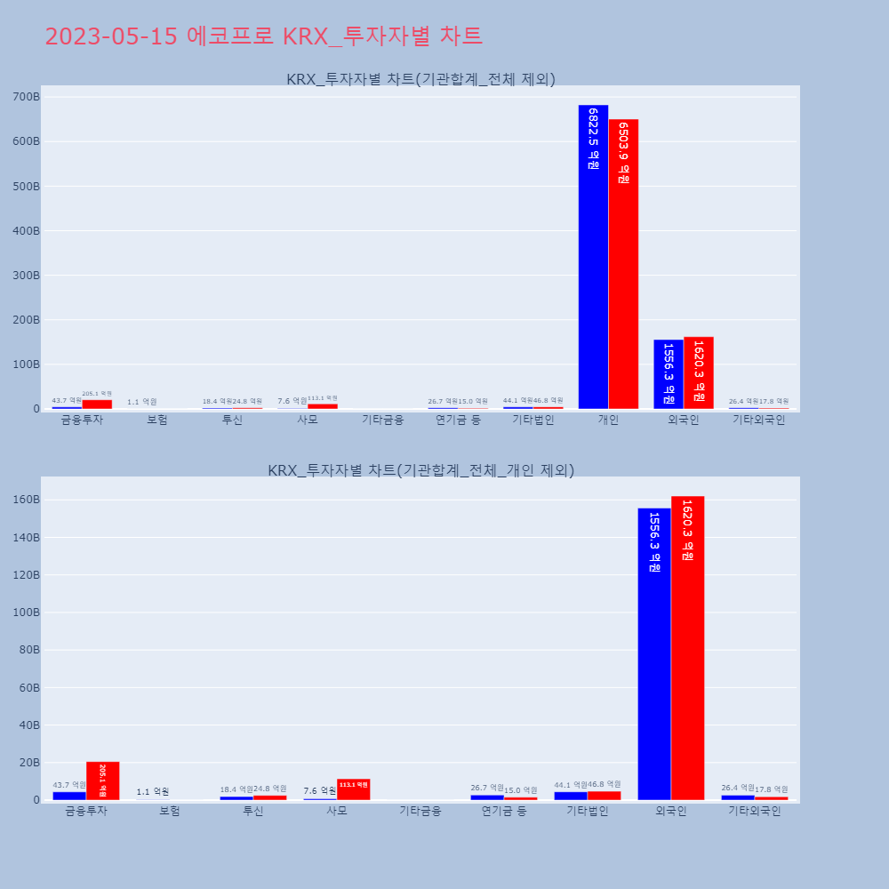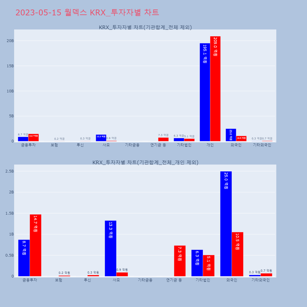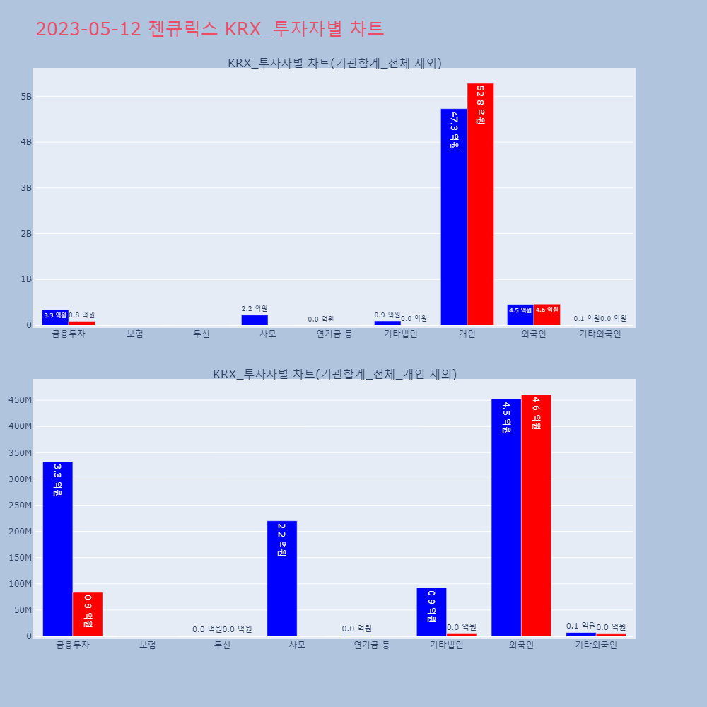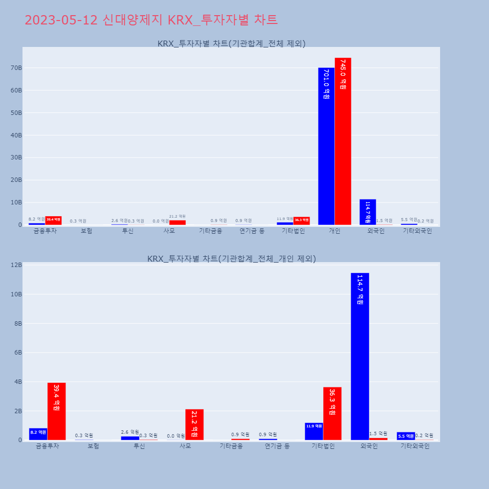 | 투자기관 | 매도량/금액(백) | 매수량/금액(백) | 순매수량/금액(백) |