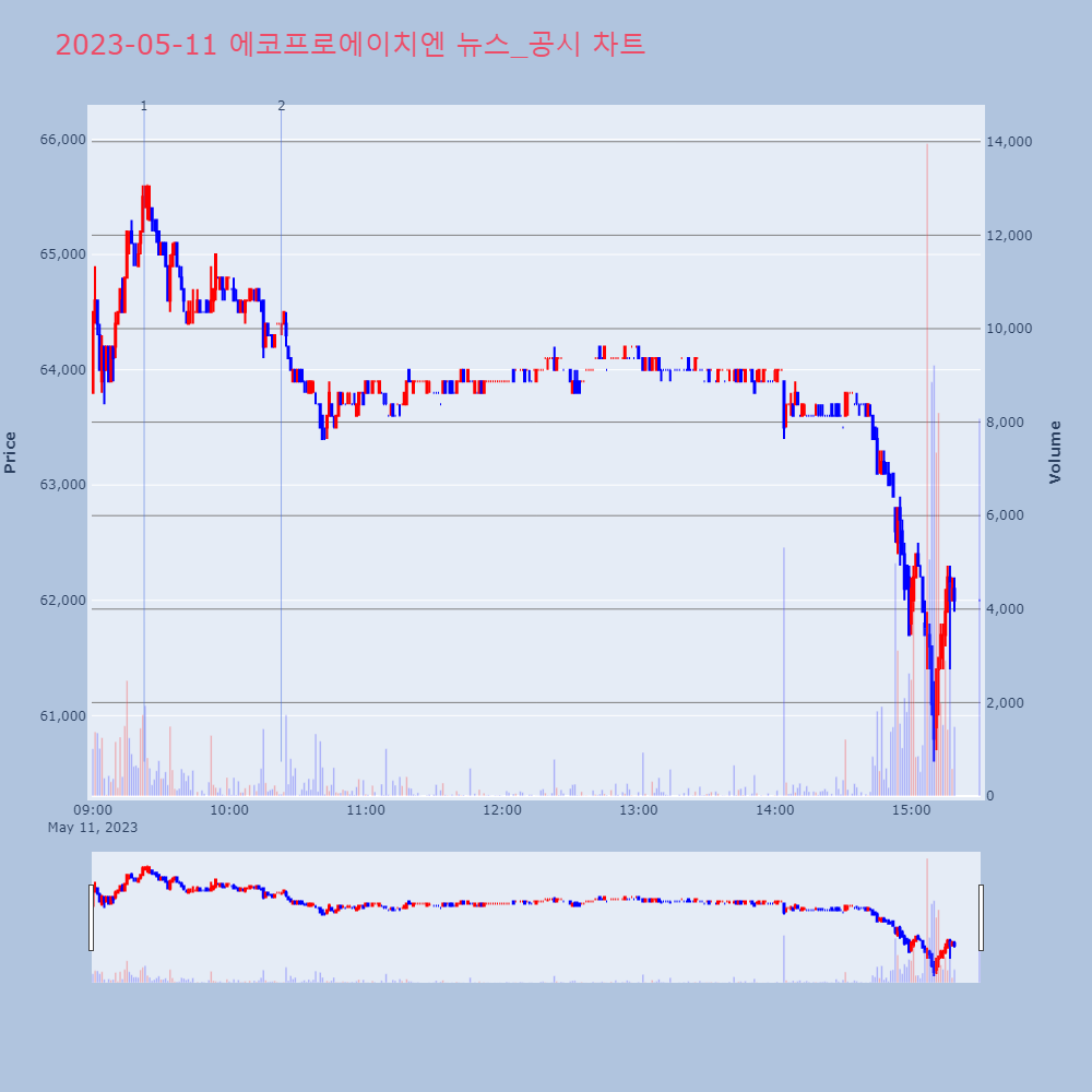 | 4 | 에코프로, -7.63% VI 발동에코프로가 VI가 발동했다. 전일 대비 7.63% 하락 | 조선경제 | 에코프로 | 2023-05-11 15:09:01 |