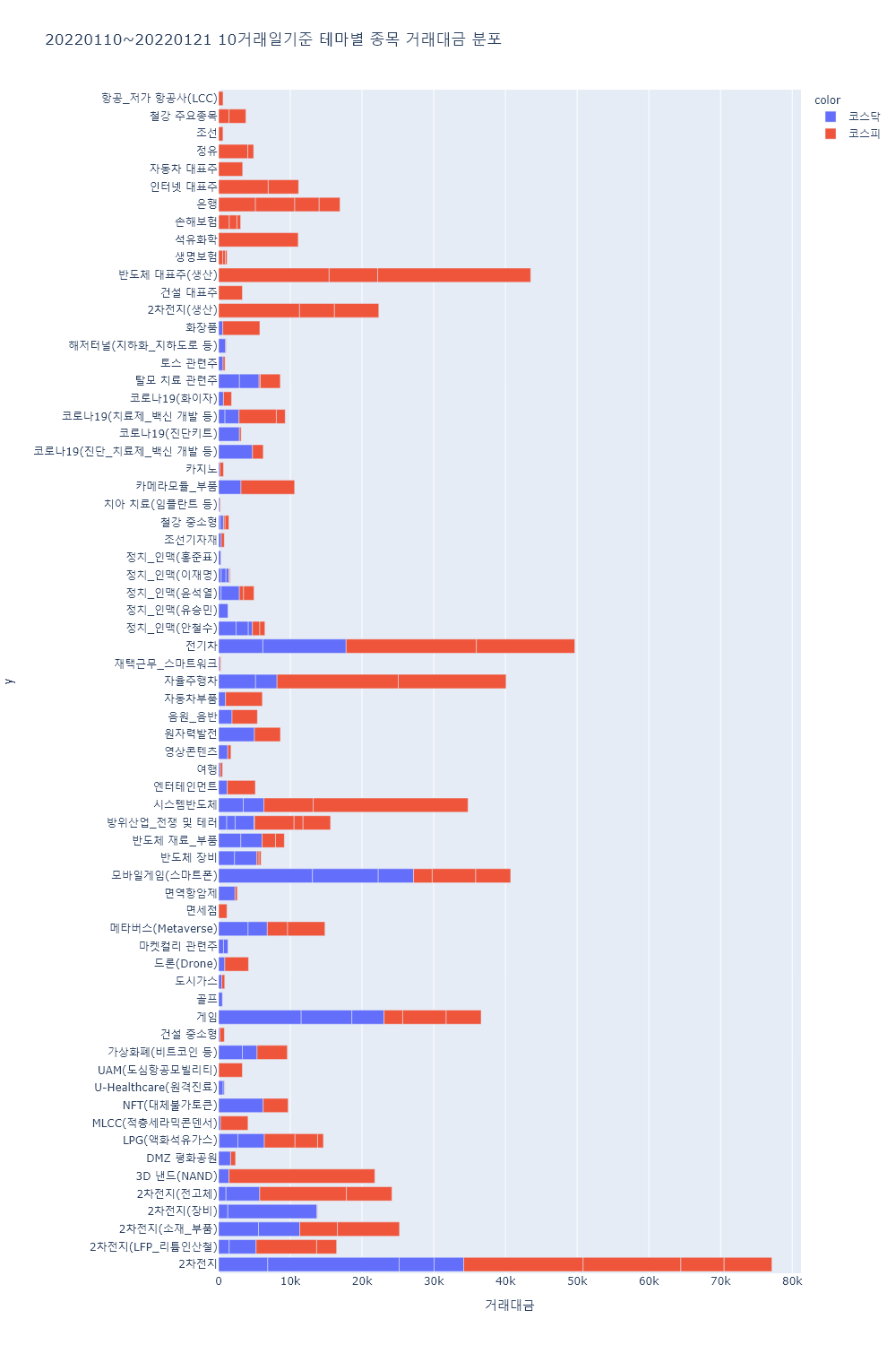 ▷이 외 화폐/금융자동화기기, 웹툰, 토스 관련주, 키오스크, 요소수 관련주, 탈모 치료 관련주, 야놀자 관련주, 쿠팡 관련주, 국내 상장 중국기업, 해저터널, 테마파크, 비료, 코로나19(스푸트니크V), 코로나19(화이자), 그래핀, 마스크, 광고, 5G, 폐기물처리 등의 테마가 하락률 상위를 기록하는 등 증시 급락 속 대부분 테마가 하락.