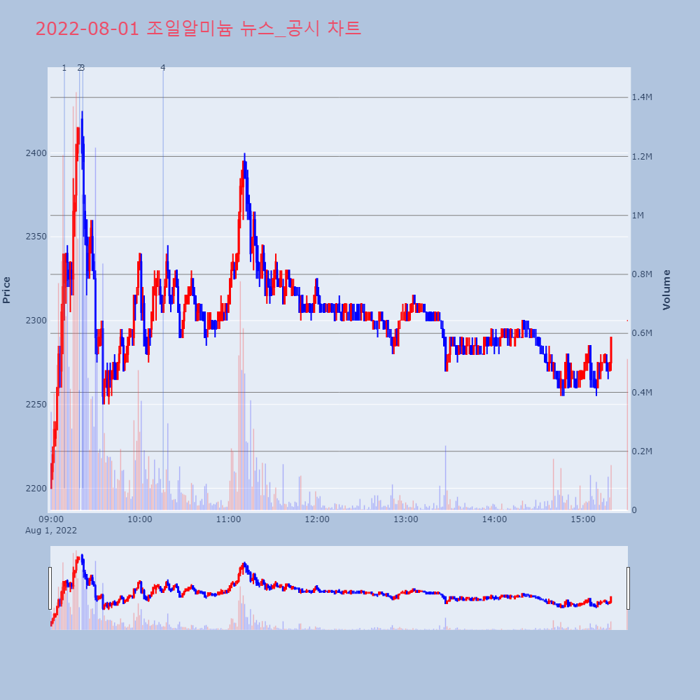 | 2022. 08. 01 특징주 국일신동 제닉 웹스 조일알미늄 대명에너지 가온칩스 (0) | 2022.08.01 |
