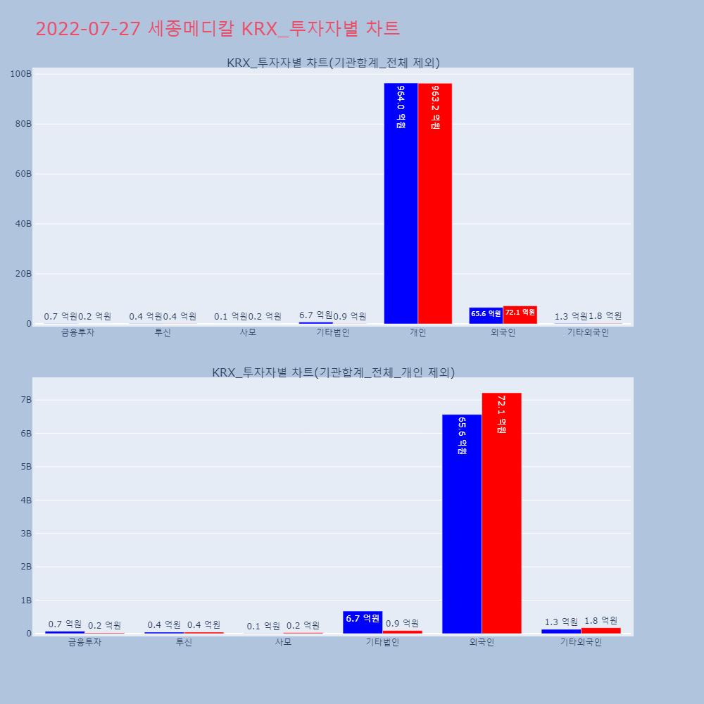 | 투자기관 | 거래량_매도 | 거래량_매수 | 거래량_순매수 | 거래대금_매도 | 거래대금_매수 | 거래대금_순매수 |