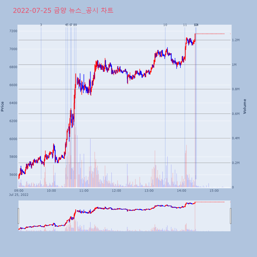 | 13 | [이시각 상한가] 금양(▲1650) - 25일 오후 14시25분[이투데이/e2BOT 기자(e2bot@etoday.co | 이투데이 | 금양 | 2022-07-25 14:26:02 |