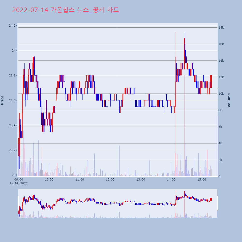 | 4 | 진매트릭스, +12.21% VI 발동진매트릭스(109820)가 VI가 발동했다. 전일 대비 | 조선경제 | 진매트릭스 | 2022-07-14 13:57:42 |