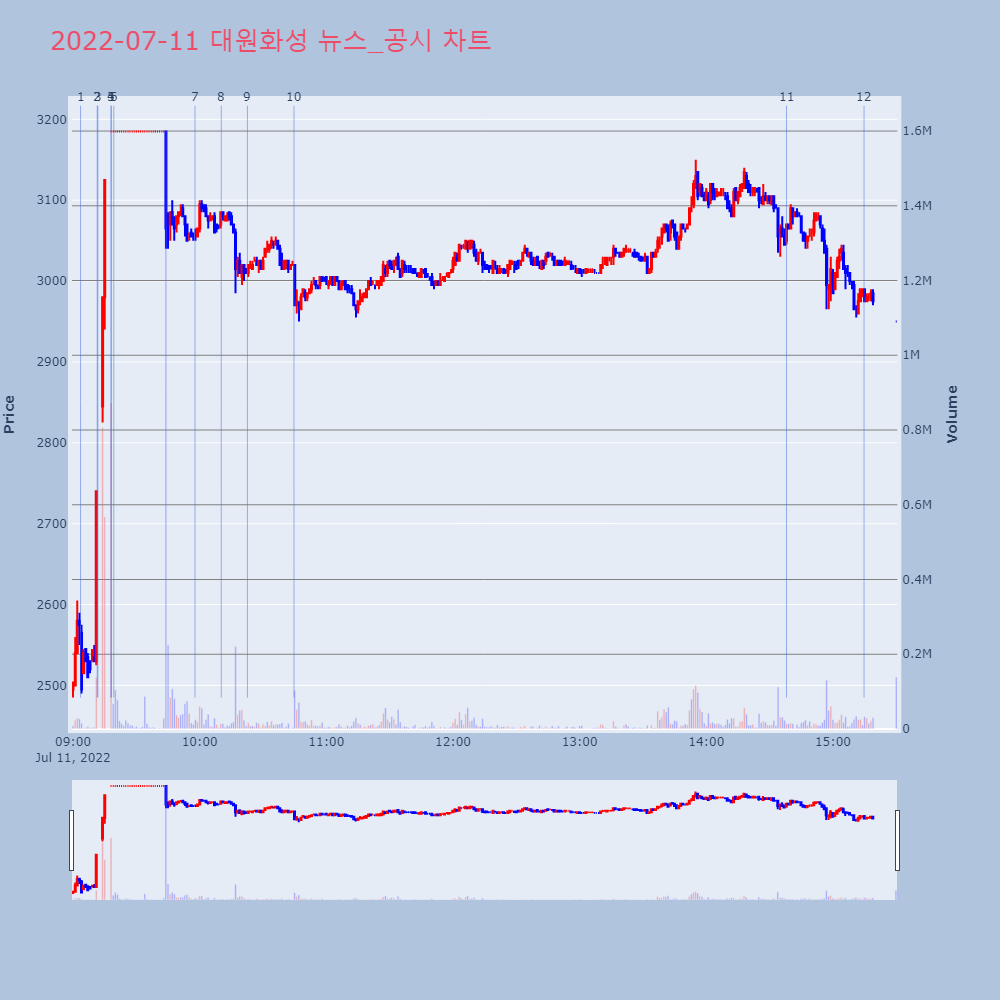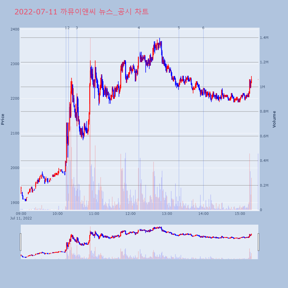 | 2022-07-11 17:43:00 | 20220711900628 | 권리락 (무상증자) |