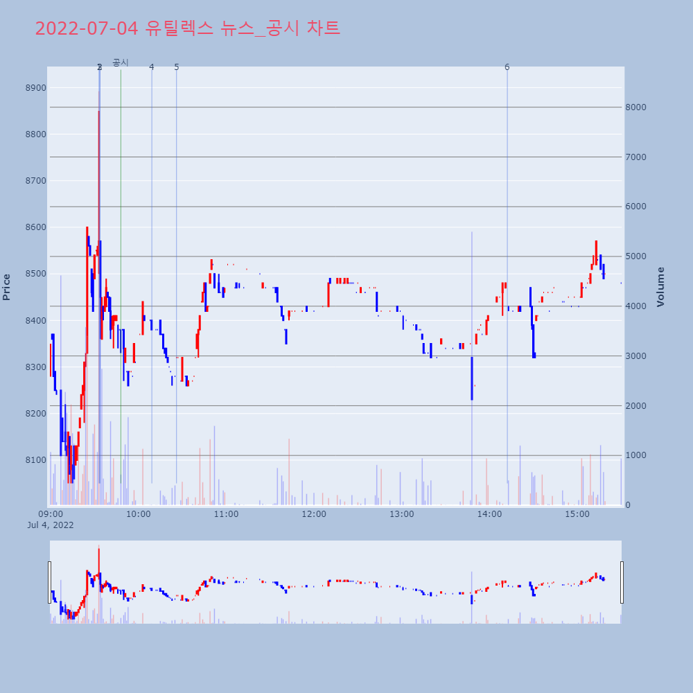 [우진비앤지(018620) (-0.7%)] (종가등락률:+6.45%)
