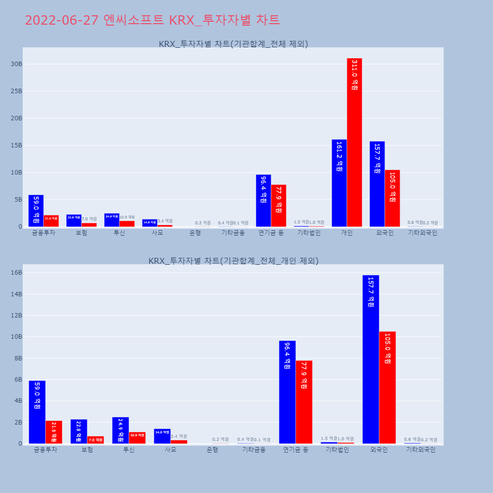 | 투자기관 | 거래량_매도 | 거래량_매수 | 거래량_순매수 | 거래대금_매도 | 거래대금_매수 | 거래대금_순매수 |