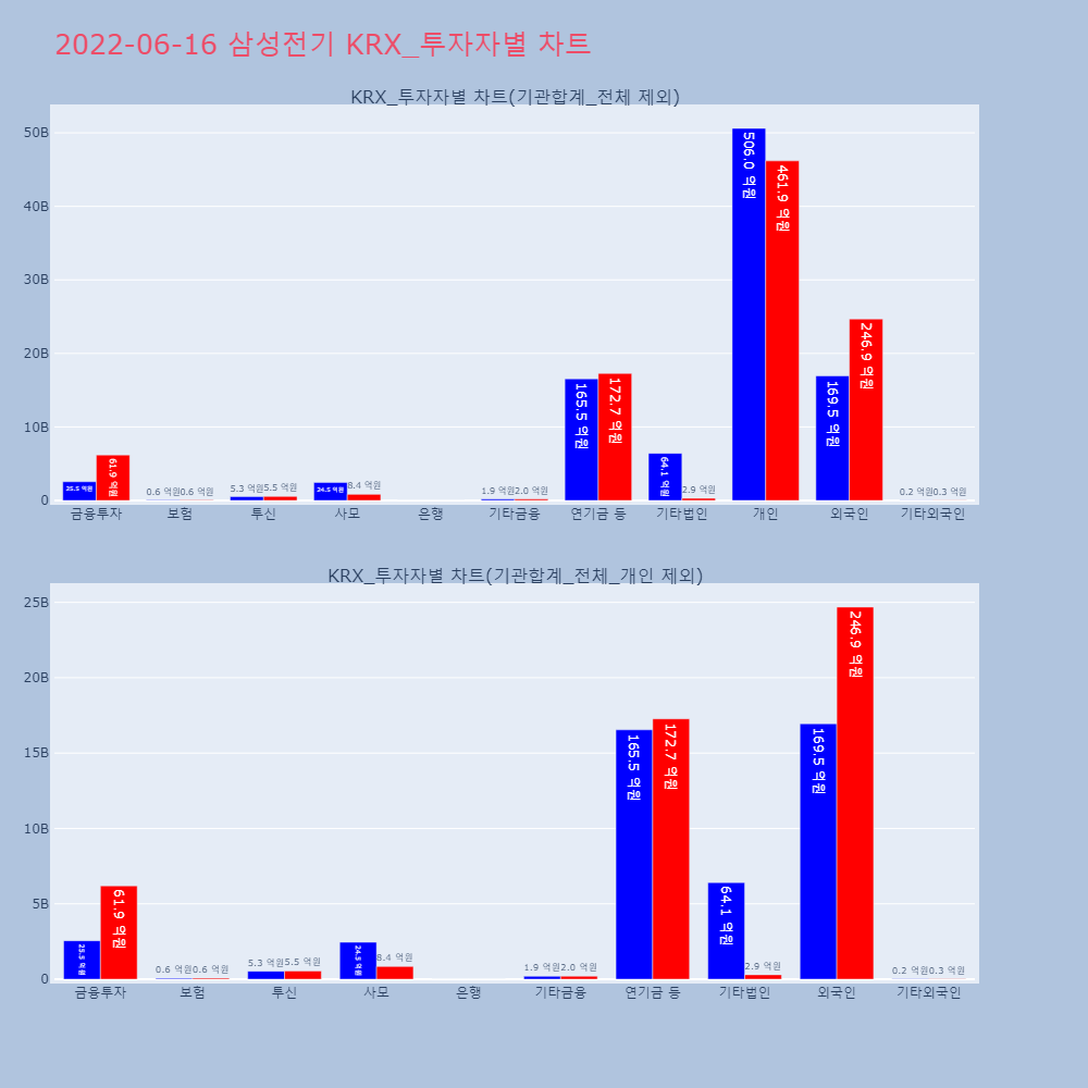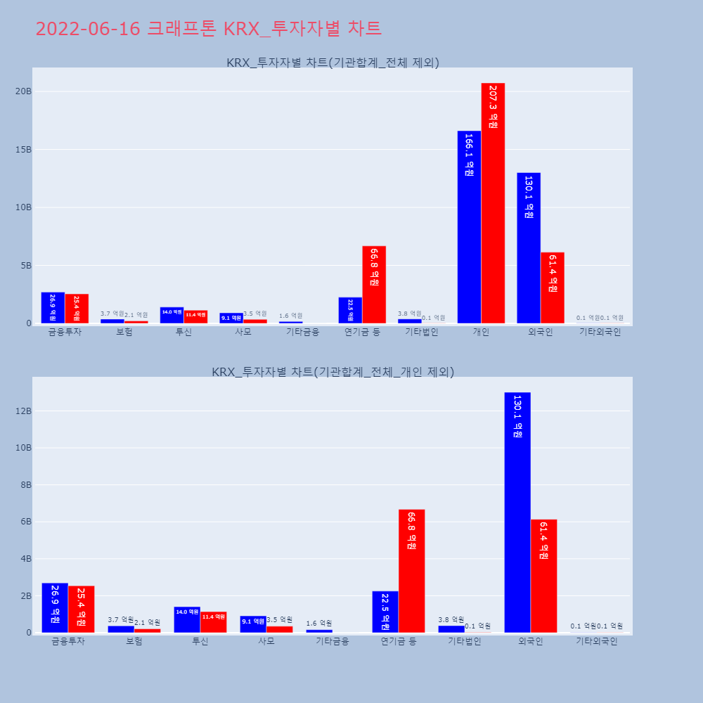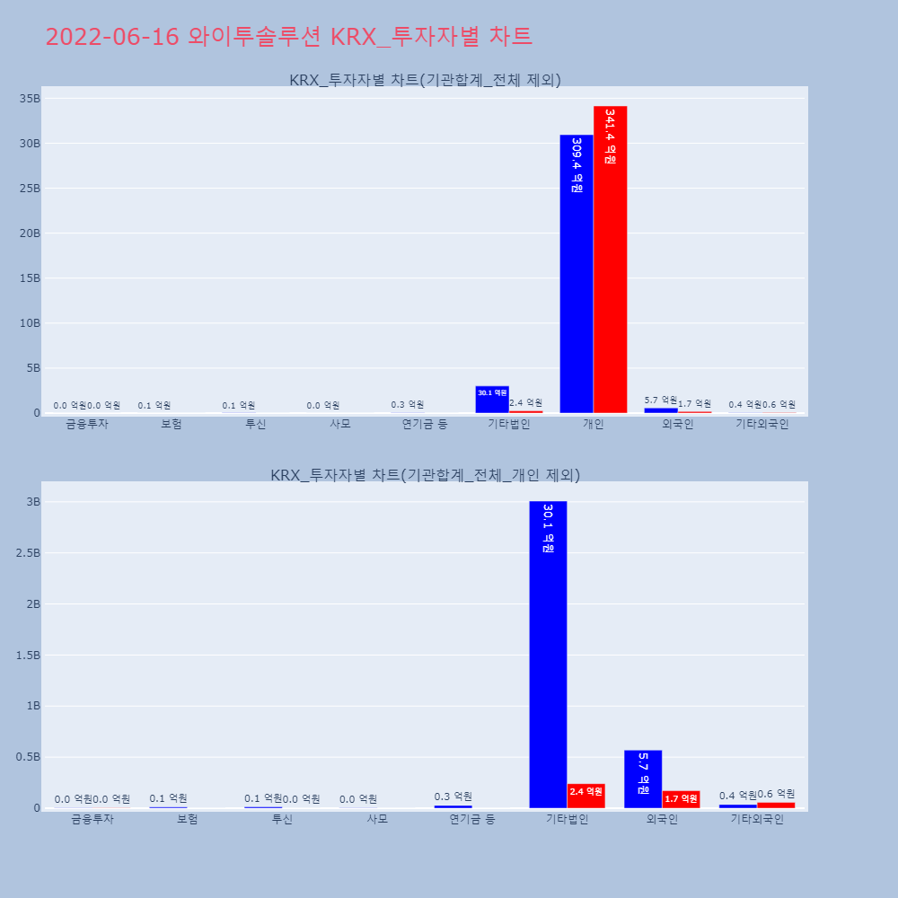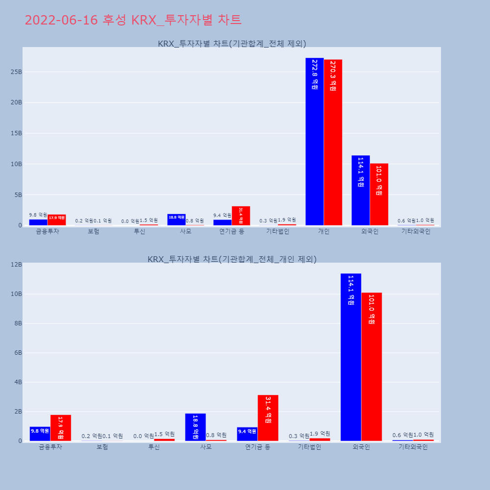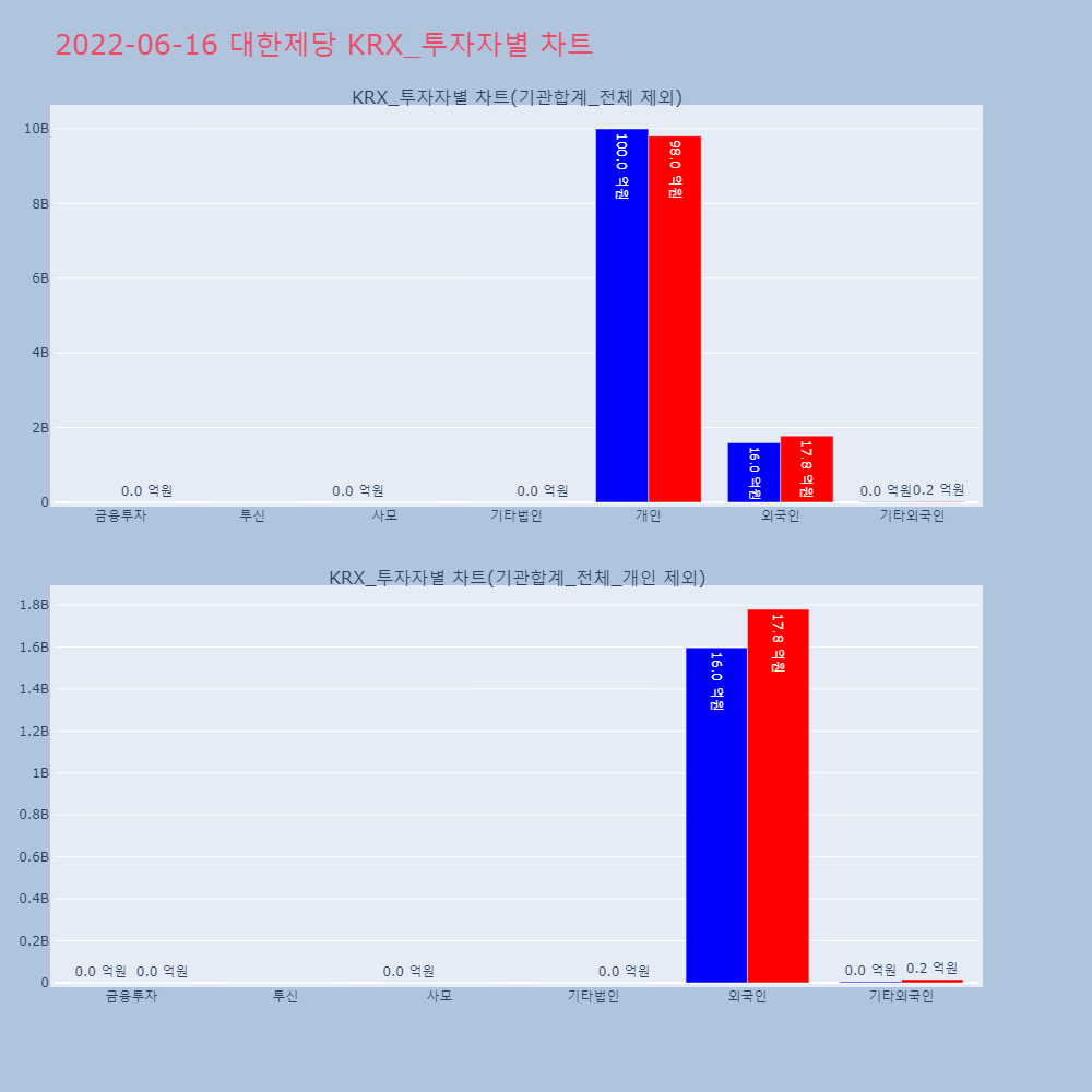 | 투자기관 | 거래량_매도 | 거래량_매수 | 거래량_순매수 | 거래대금_매도 | 거래대금_매수 | 거래대금_순매수 |