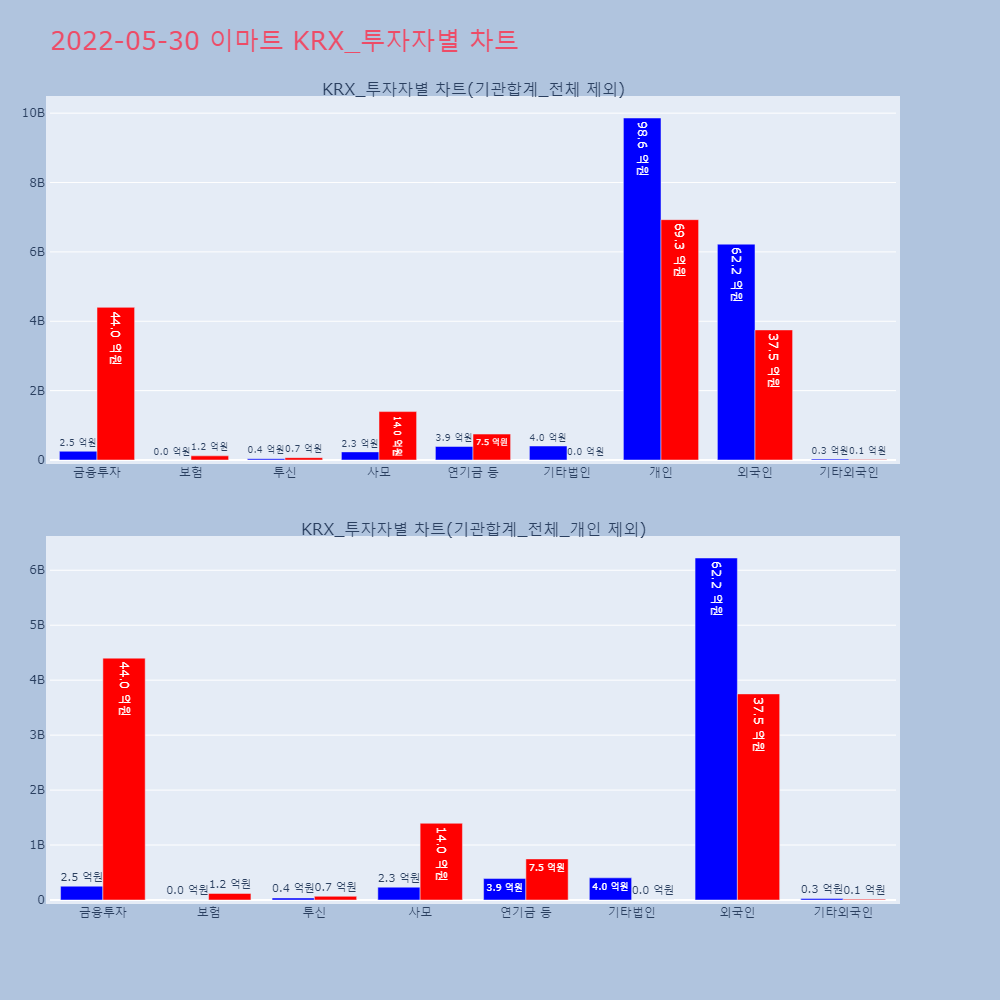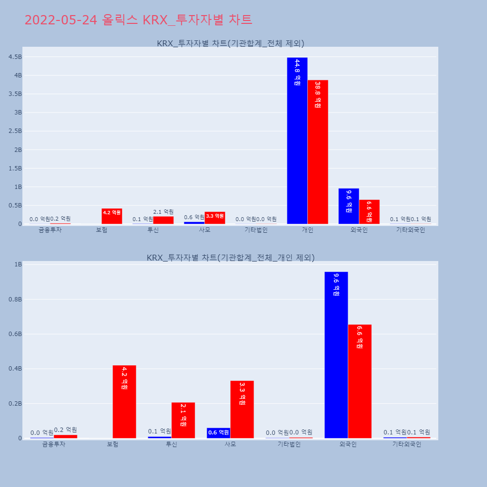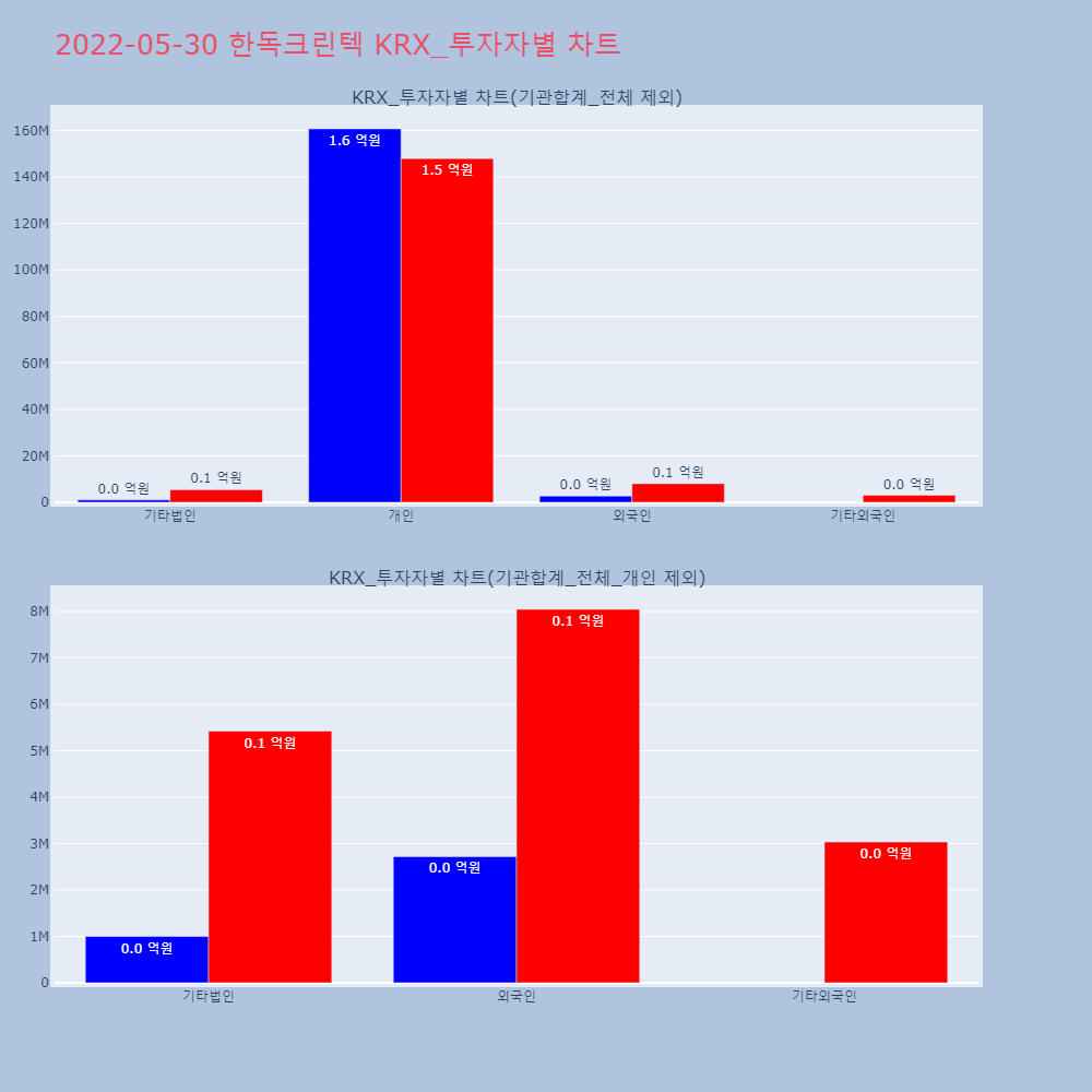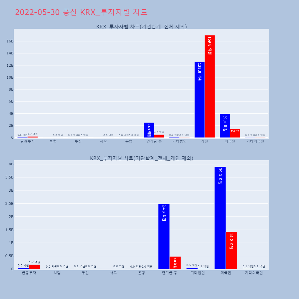 | 투자기관 | 거래량_매도 | 거래량_매수 | 거래량_순매수 | 거래대금_매도 | 거래대금_매수 | 거래대금_순매수 |
