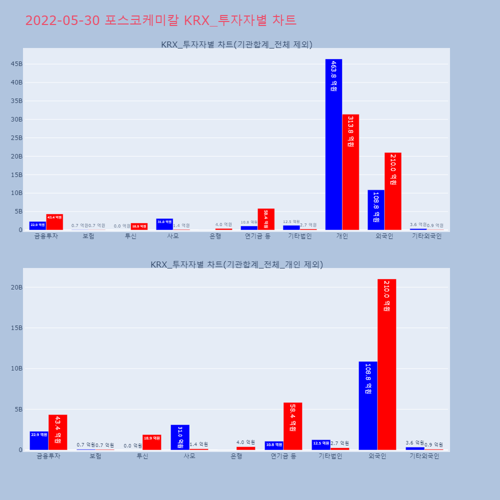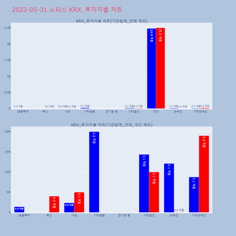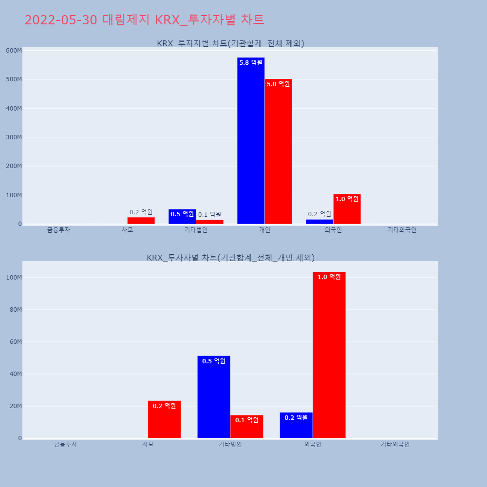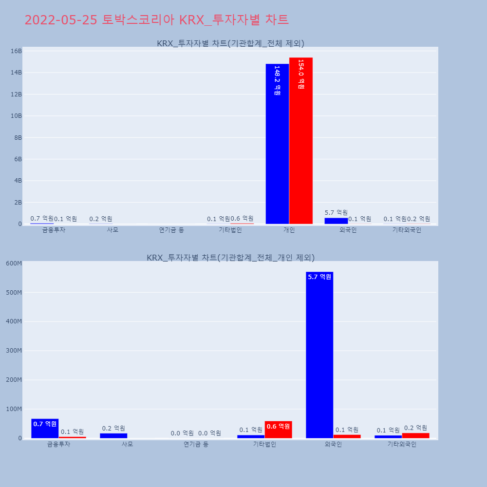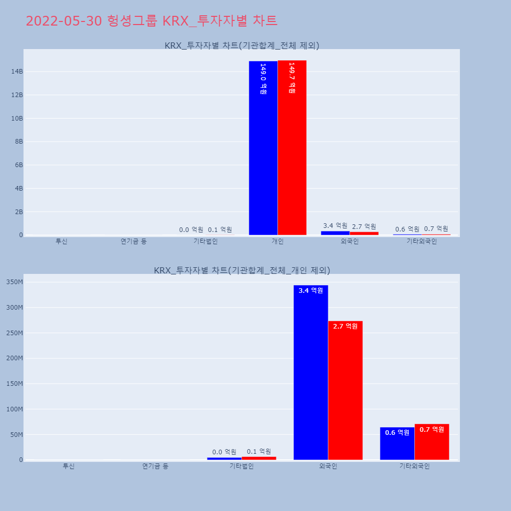 | 투자기관 | 거래량_매도 | 거래량_매수 | 거래량_순매수 | 거래대금_매도 | 거래대금_매수 | 거래대금_순매수 |