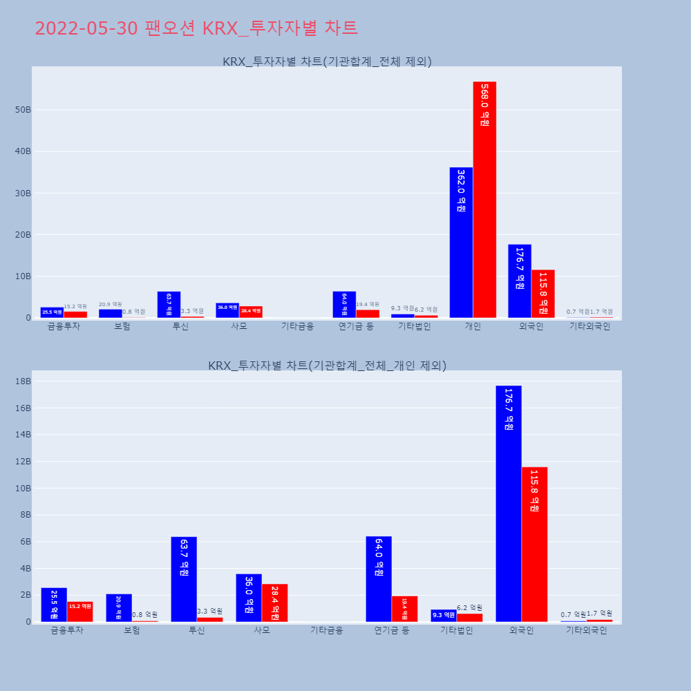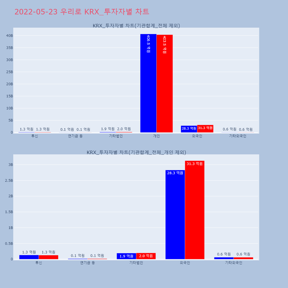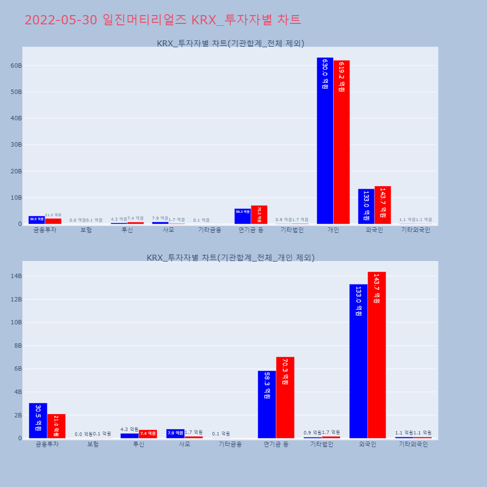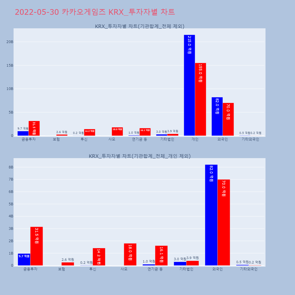 | 투자기관 | 거래량_매도 | 거래량_매수 | 거래량_순매수 | 거래대금_매도 | 거래대금_매수 | 거래대금_순매수 |