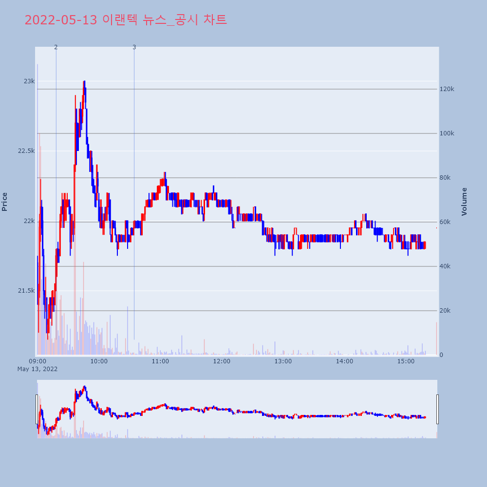 | 2022. 05. 13 시간외 특징주 KG모빌리언스 나인테크 나라엠앤디 KG ETS 케이피에프 메디콕스 세방 HLB제약 에스씨엠생명과학 태웅로직스 (0) | 2022.05.13 |