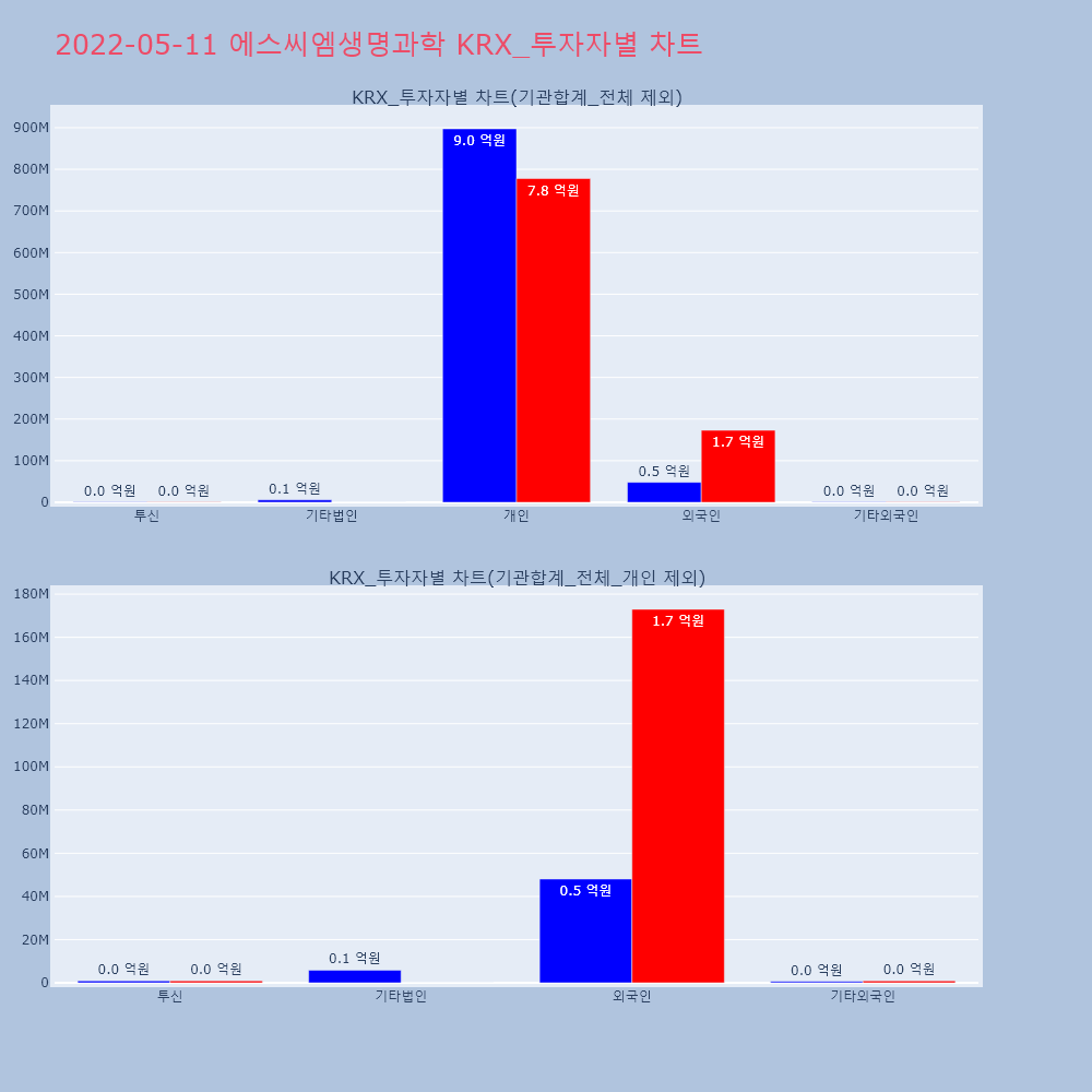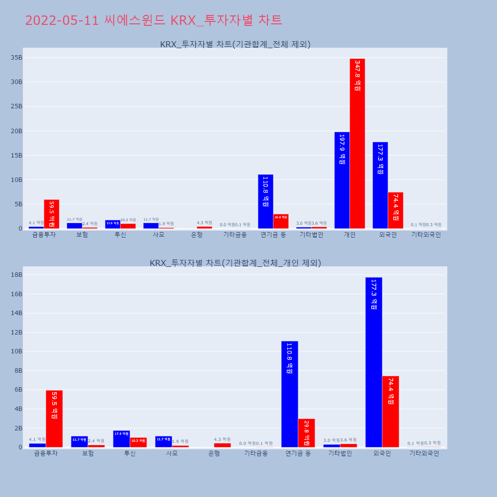 | 사모 | 25,180 | 1,693 | -23,487 | 877,229,100 | 55,736,900 | -821,492,200 |