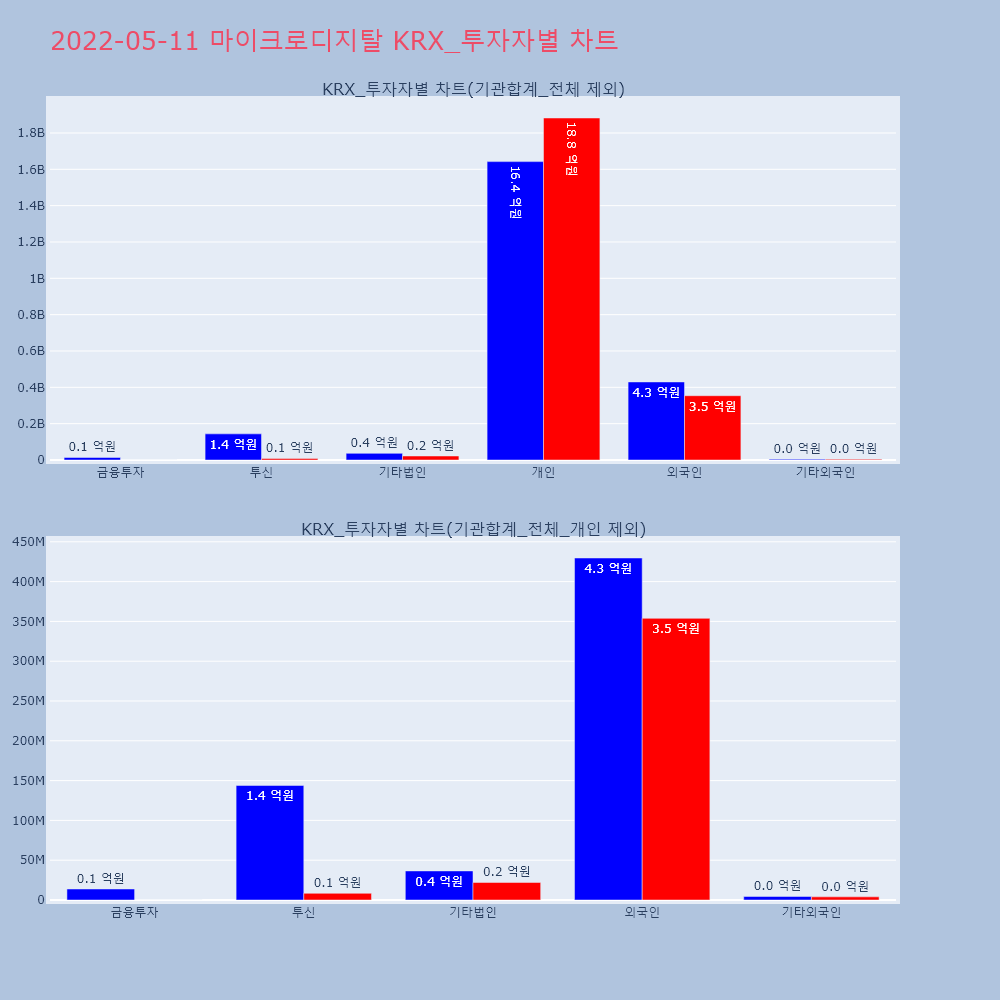 | 투자기관 | 거래량_매도 | 거래량_매수 | 거래량_순매수 | 거래대금_매도 | 거래대금_매수 | 거래대금_순매수 |