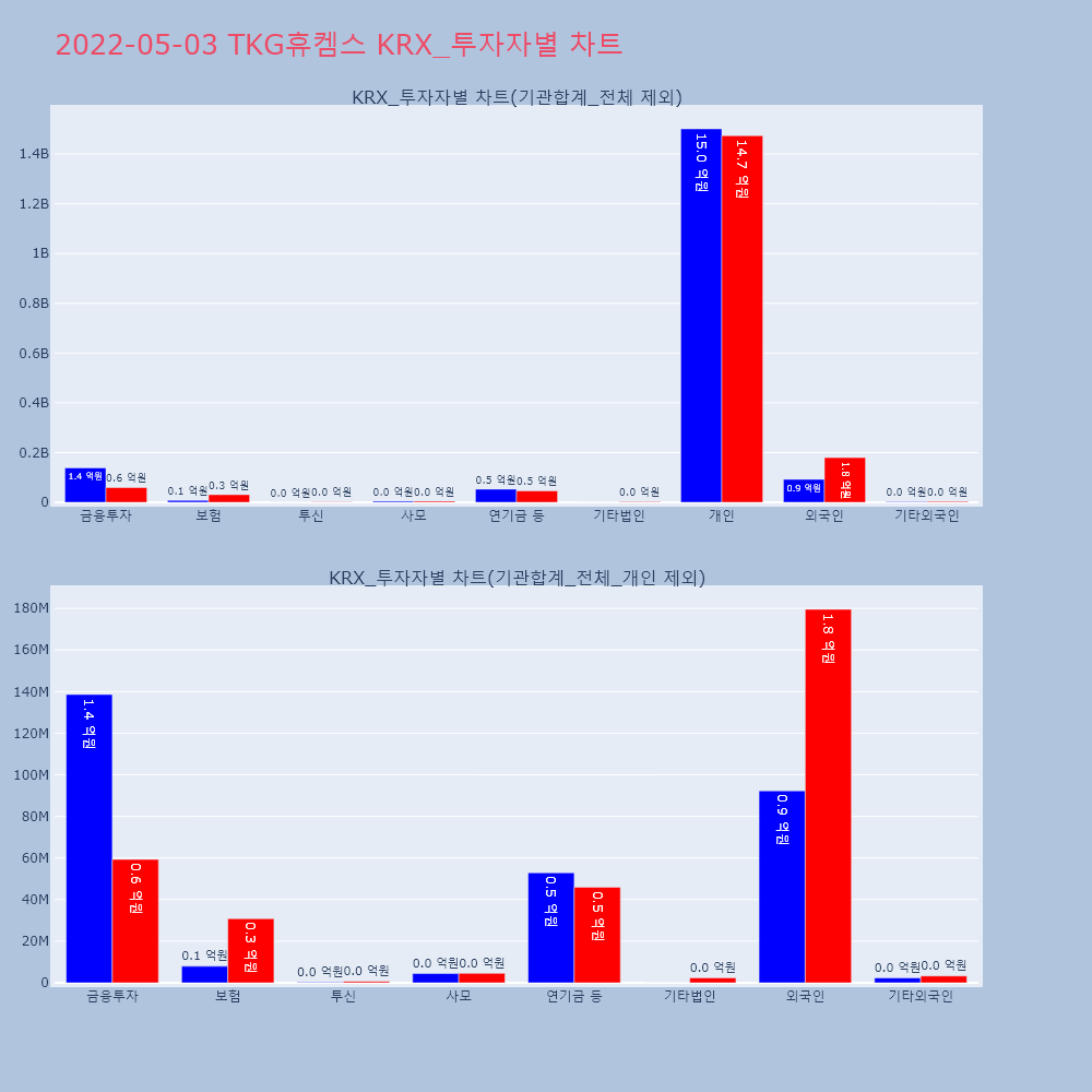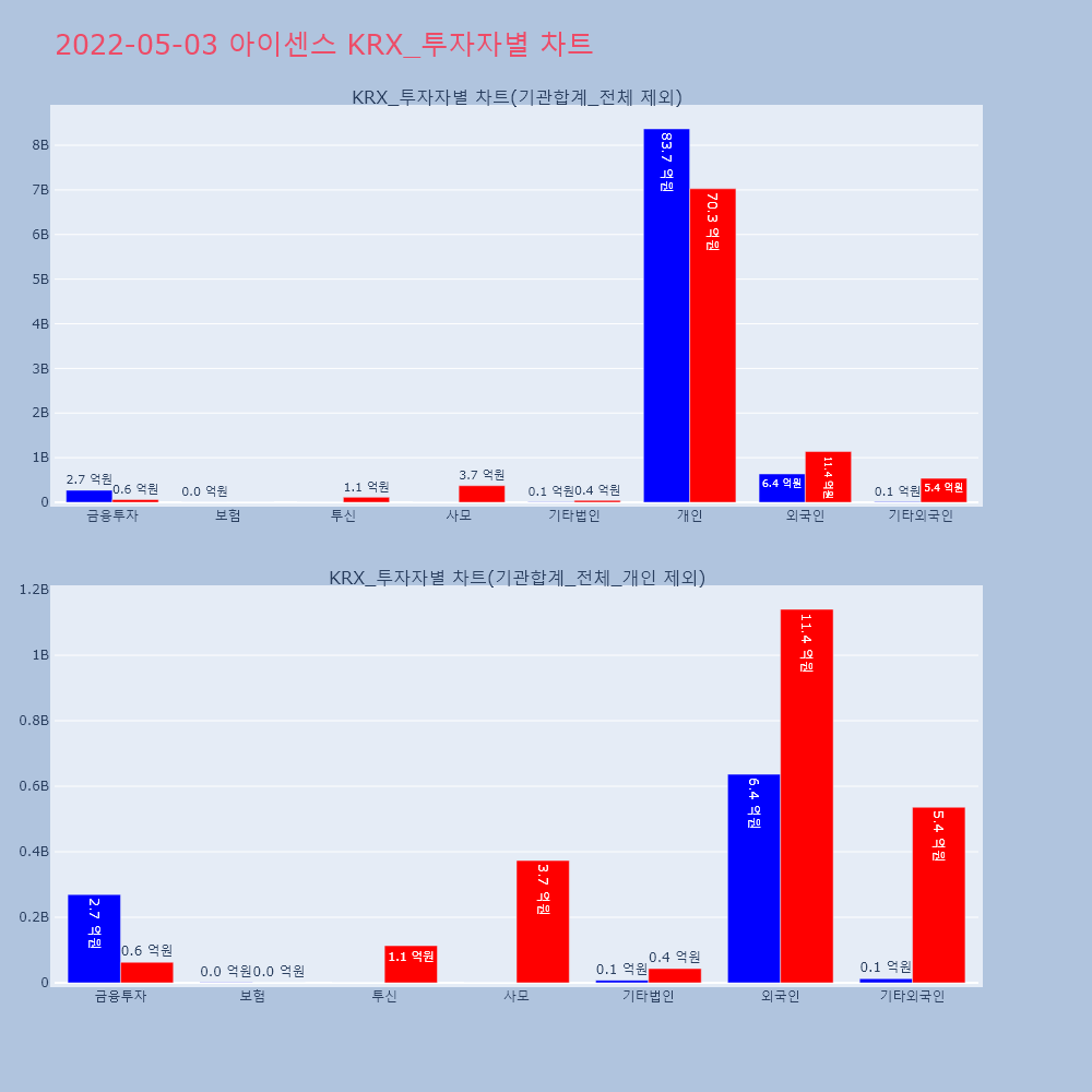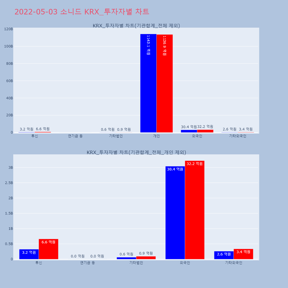 | 투자기관 | 거래량_매도 | 거래량_매수 | 거래량_순매수 | 거래대금_매도 | 거래대금_매수 | 거래대금_순매수 |