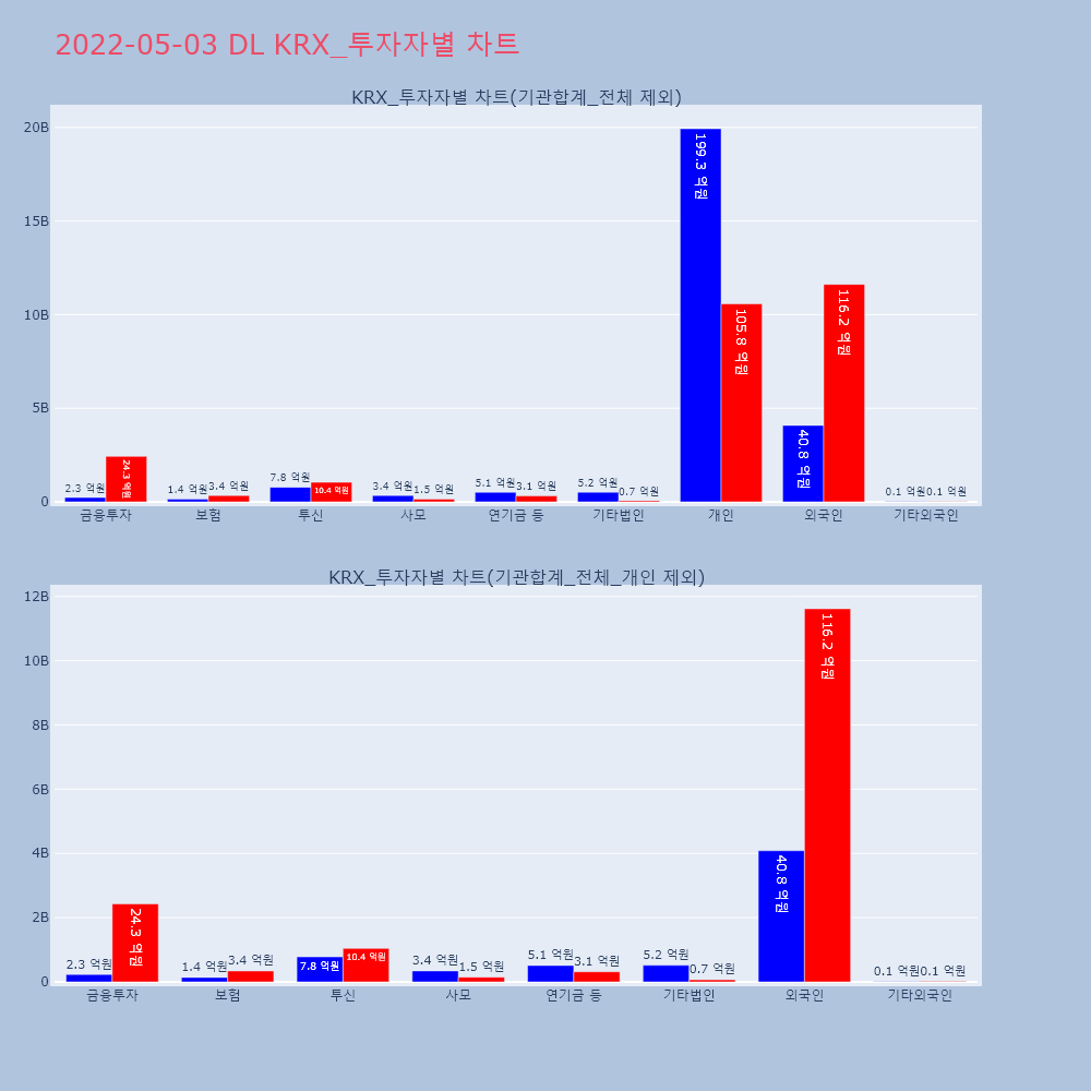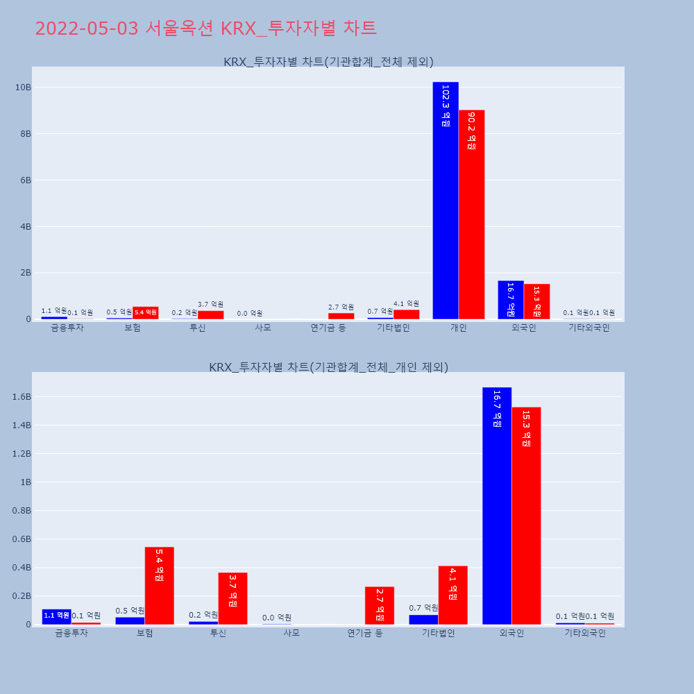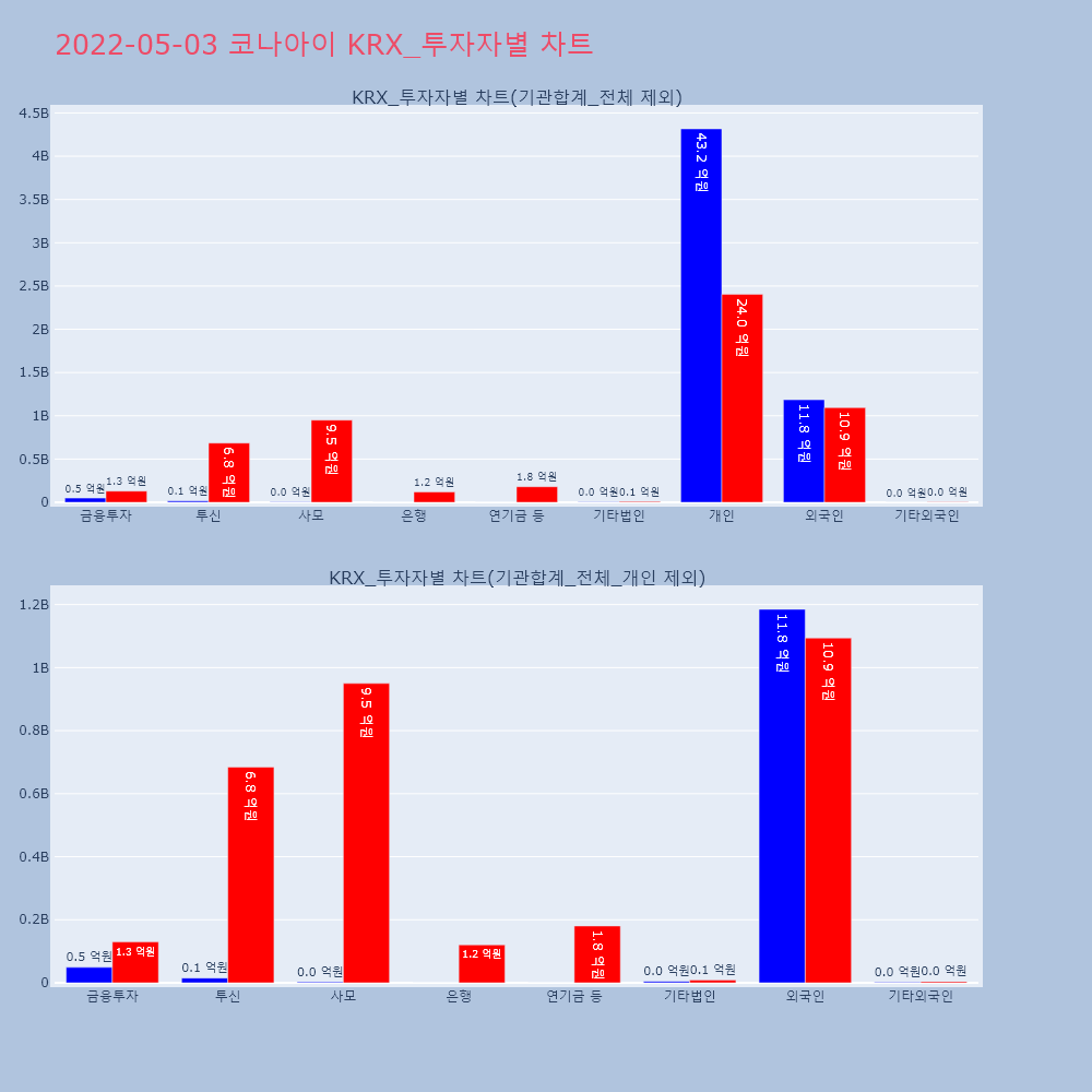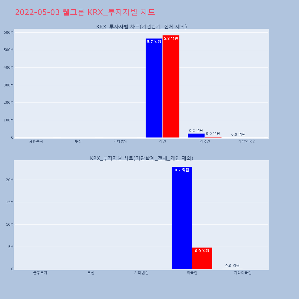 | 개인 | 41,293 | 39,054 | -2,239 | 10,397,455,500 | 9,817,006,000 | -580,449,500 |