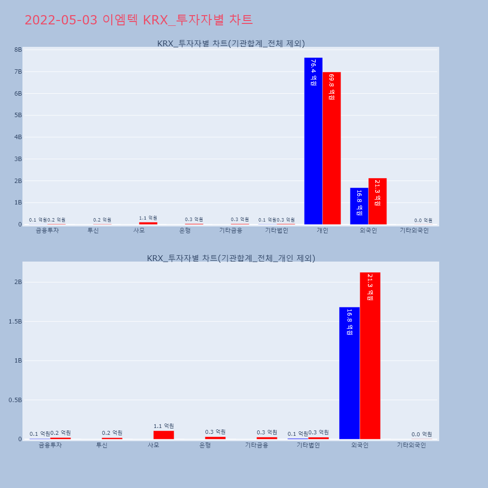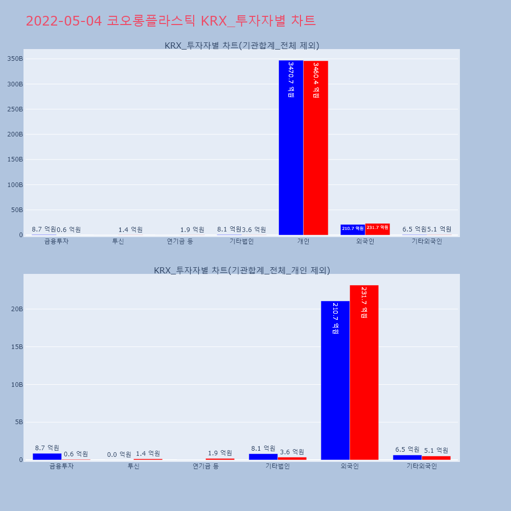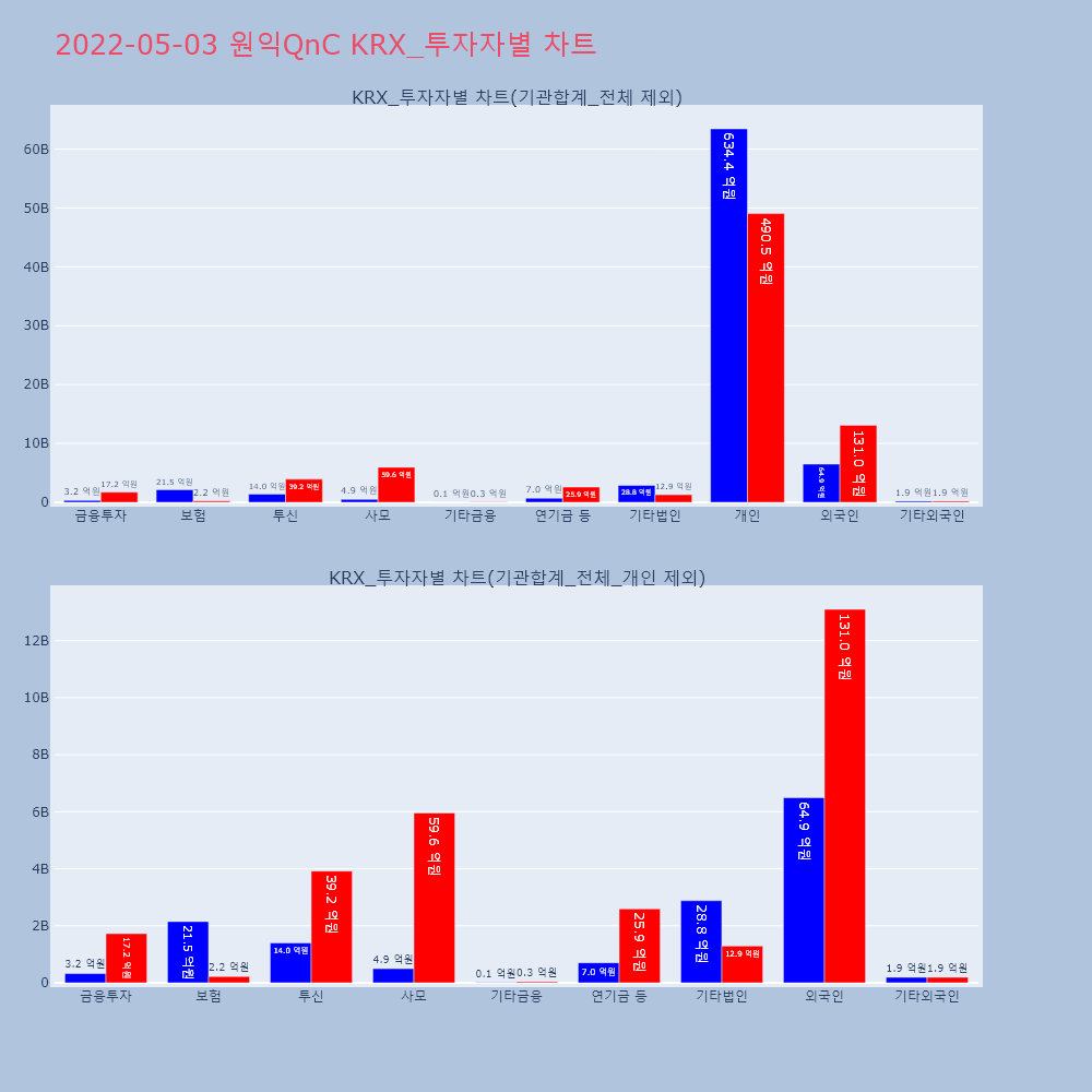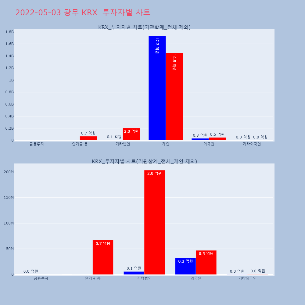 | 개인 | 41,293 | 39,054 | -2,239 | 10,397,455,500 | 9,817,006,000 | -580,449,500 |