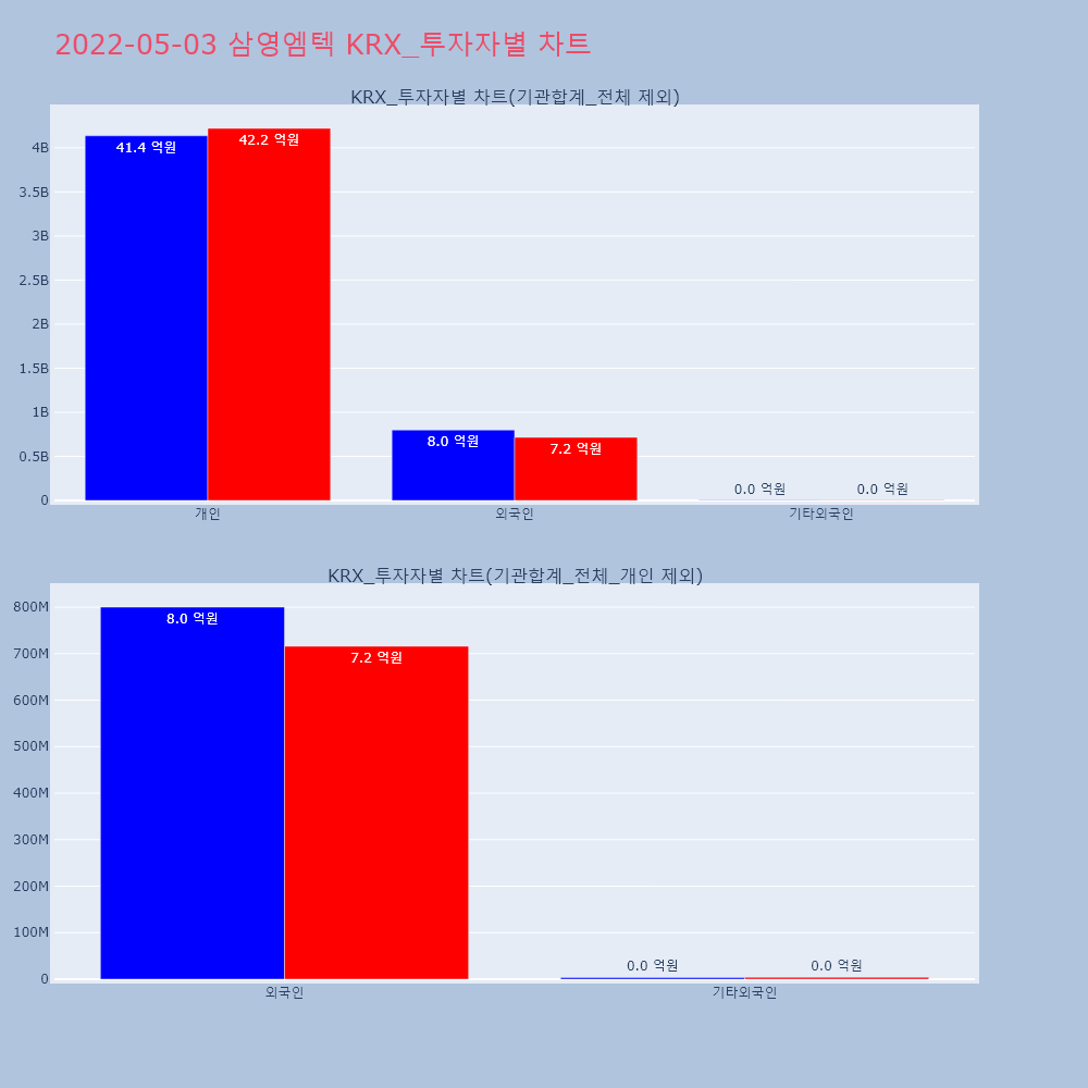 | 외국인 | 32,633 | 20,660 | -11,973 | 8,193,594,500 | 5,212,272,500 | -2,981,322,000 |