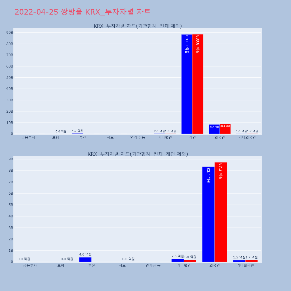 | 투자기관 | 거래량_매도 | 거래량_매수 | 거래량_순매수 | 거래대금_매도 | 거래대금_매수 | 거래대금_순매수 |