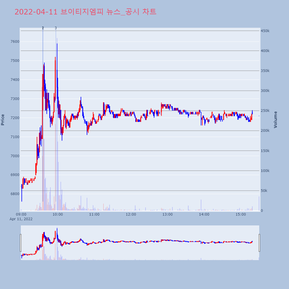 | 3 | 벽산, +11.51% VI 발동벽산(007210)이 VI가 발동했다. 전일 대비 11 | 조선경제 | 벽산 | 2022-04-12 11:13:12 |