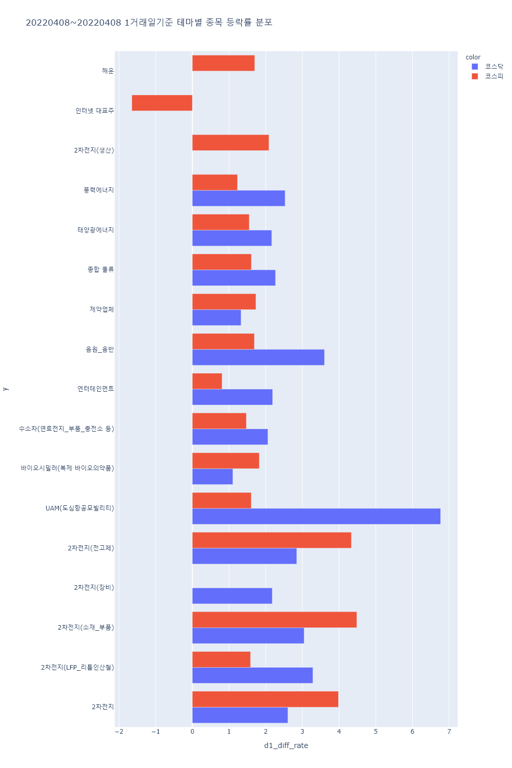 ▷러시아-우크라이나 전쟁 여파 지속 등에 부각됐던 전선, 비료, 사료, 농업, 수산 등 테마 하락.