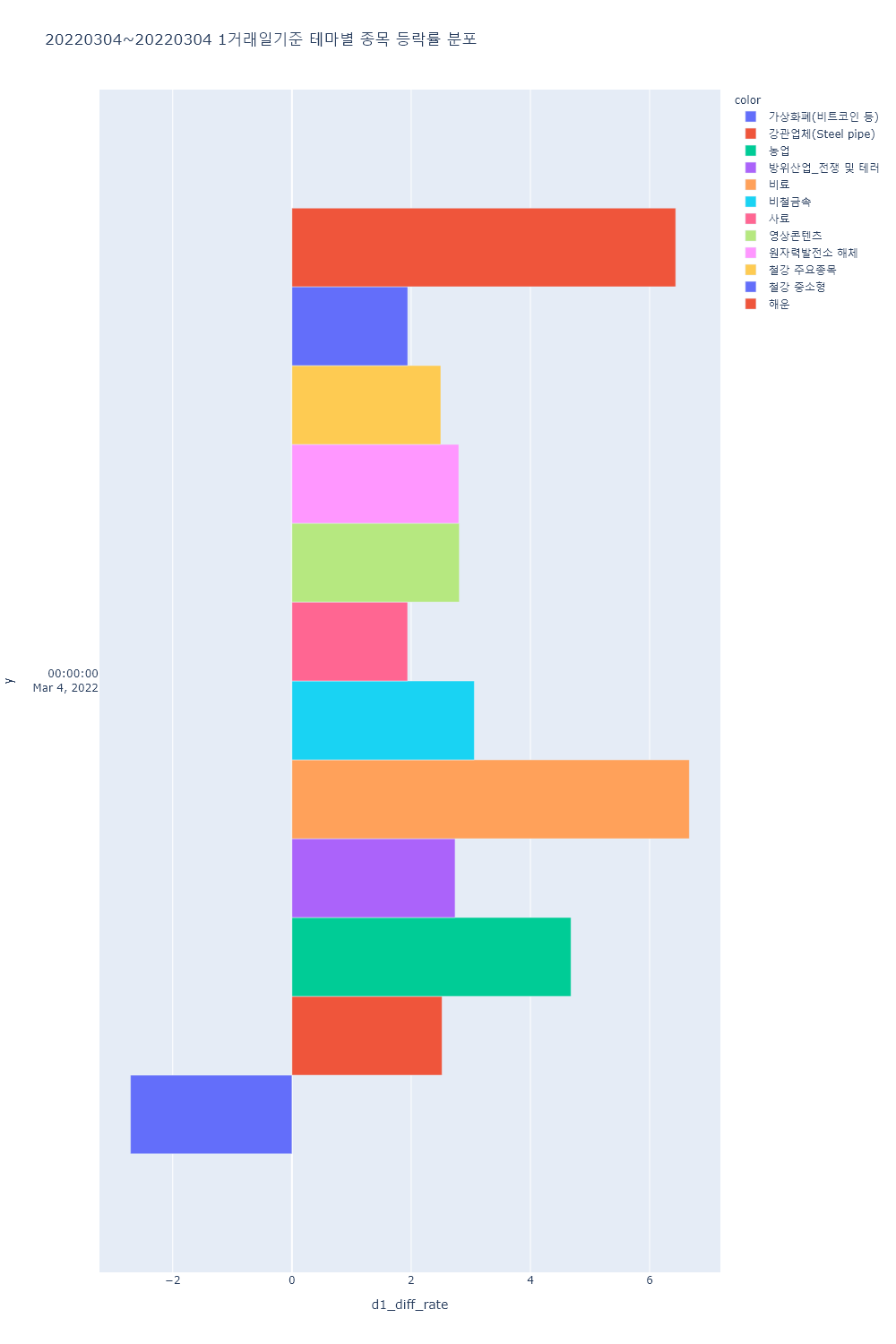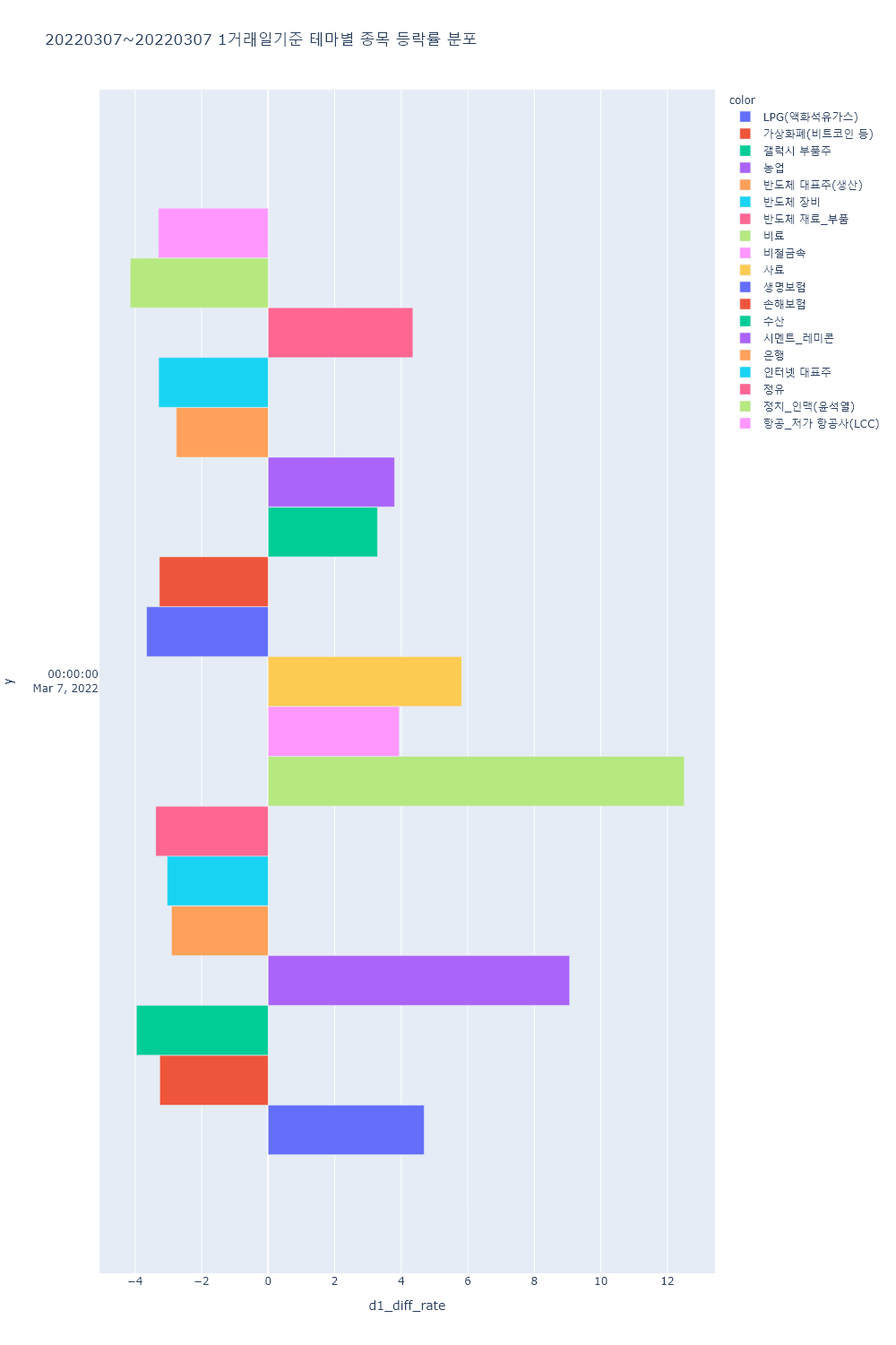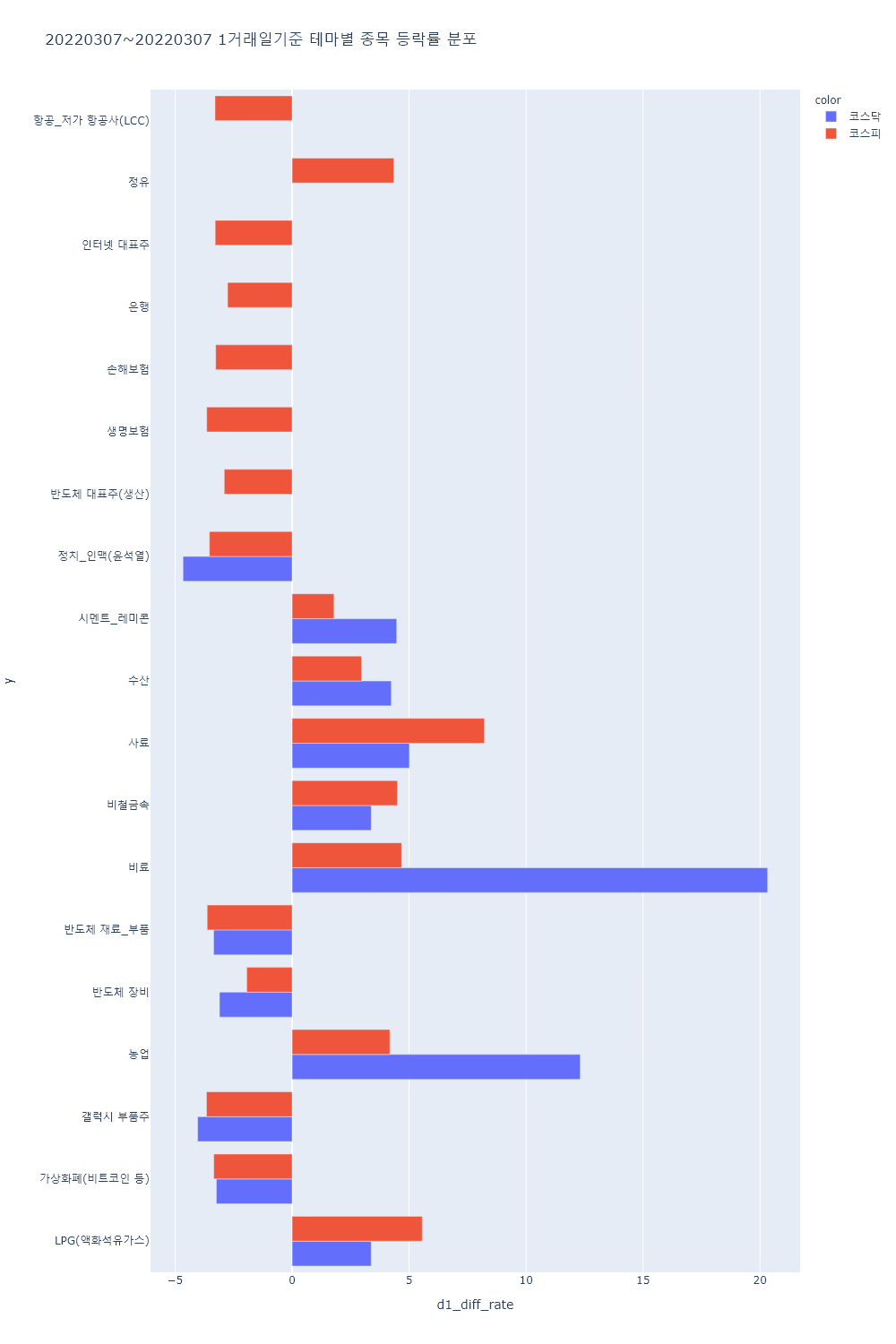 ▷이 외에 카지노, 지능형로봇/인공지능, 창투사, 2차전지, 폴더블폰, MLCC, 마이데이터, 두나무 관련주, 화장품 등 대부분의 테마가 하락.