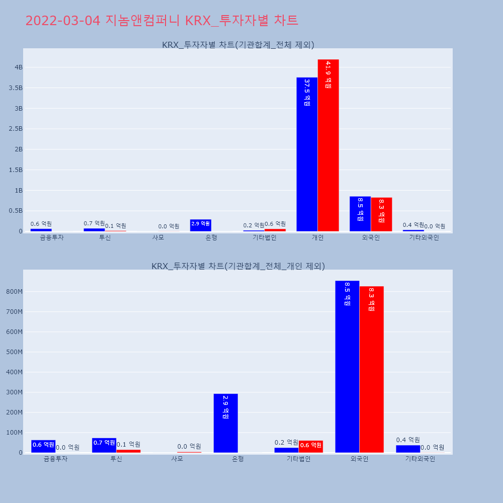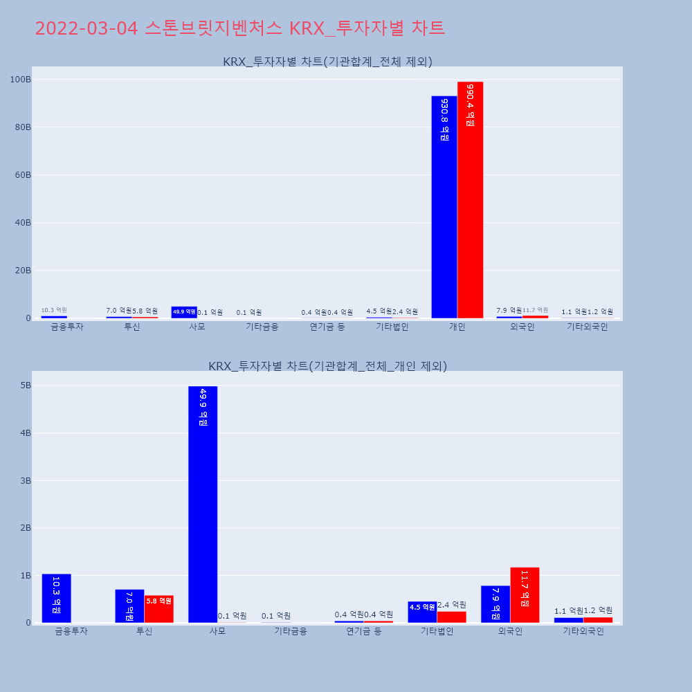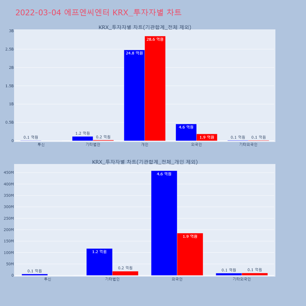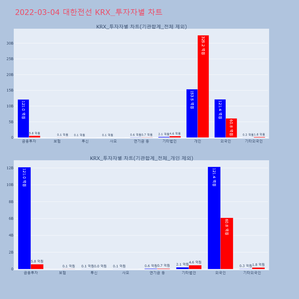 | 투자기관 | 거래량_매도 | 거래량_매수 | 거래량_순매수 | 거래대금_매도 | 거래대금_매수 | 거래대금_순매수 |