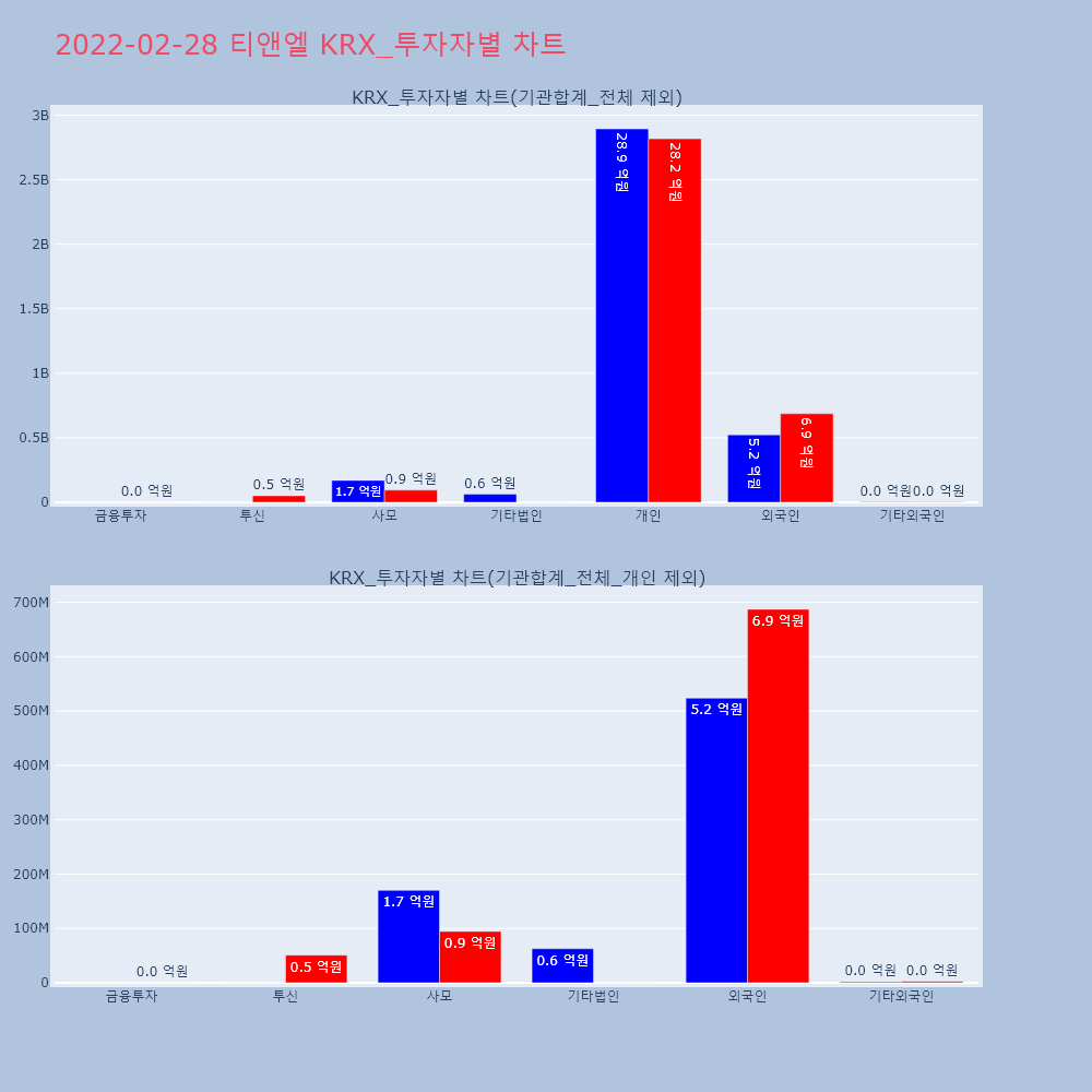 | 외국인 | 36,097 | 16,905 | -19,192 | 632,972,250 | 297,470,200 | -335,502,050 |