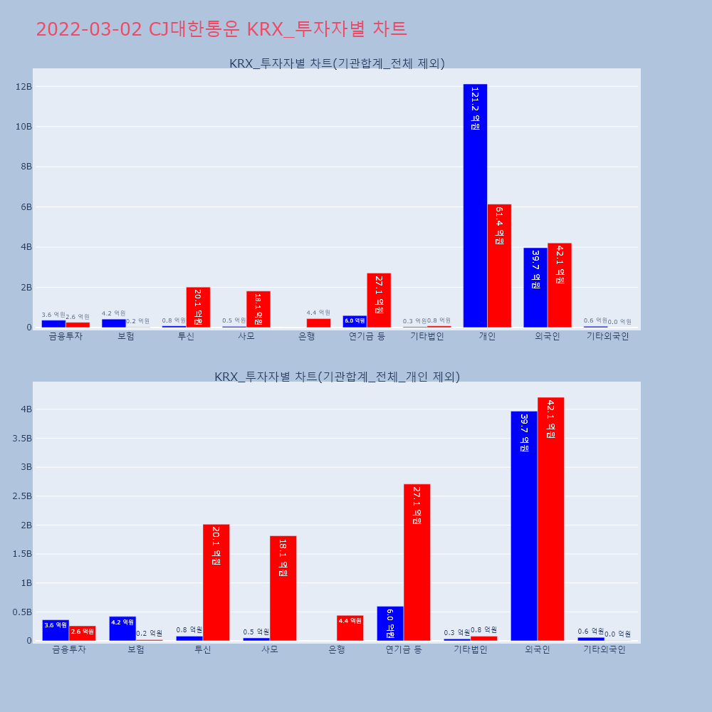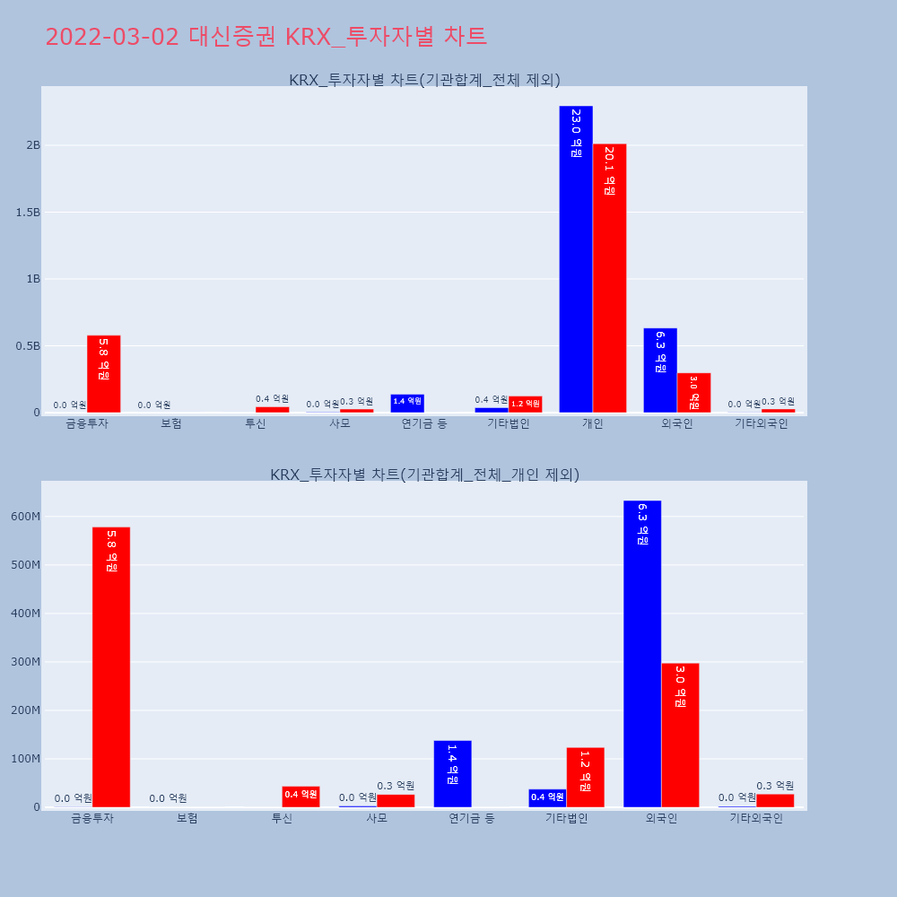 | 투자기관 | 거래량_매도 | 거래량_매수 | 거래량_순매수 | 거래대금_매도 | 거래대금_매수 | 거래대금_순매수 |