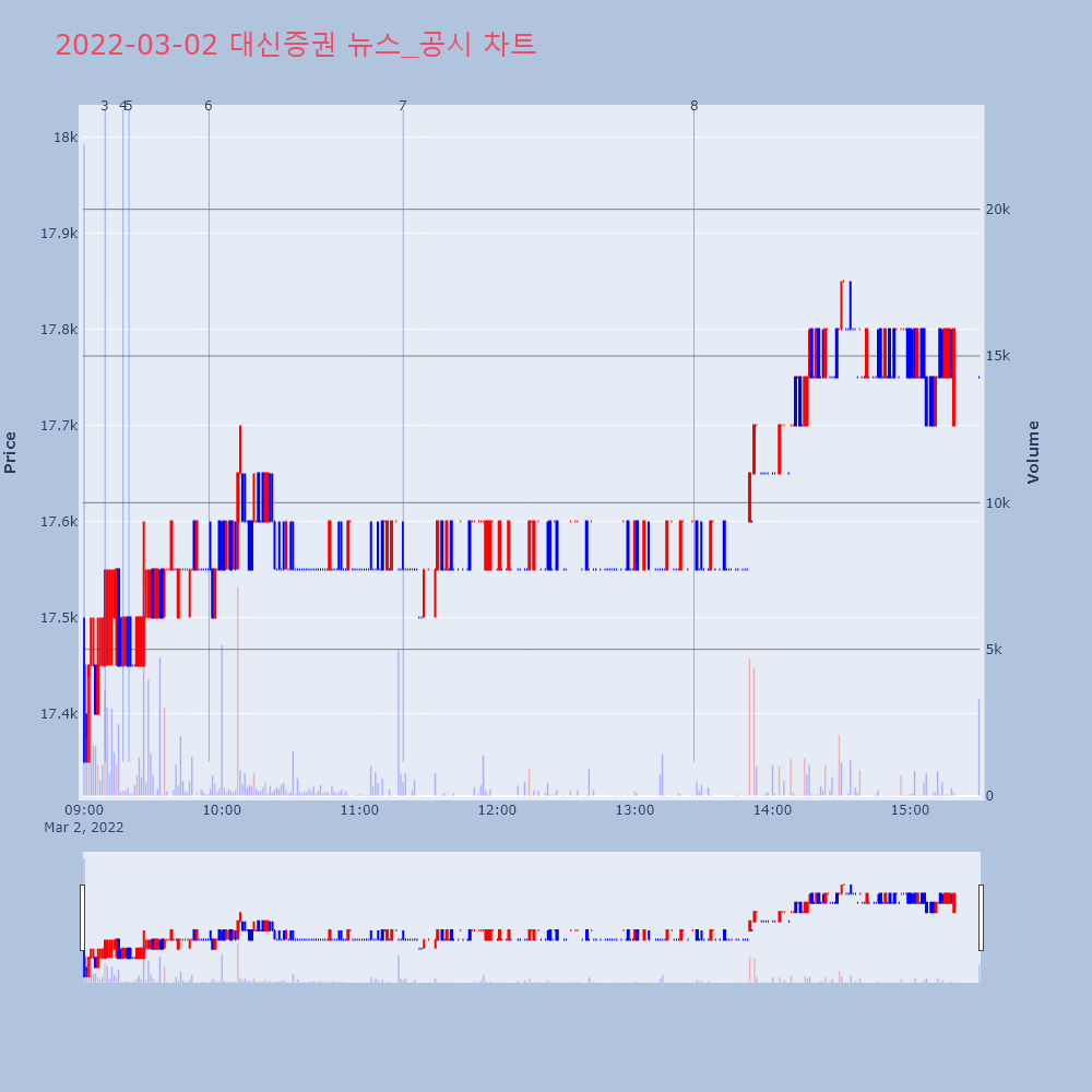| 4 | [특징주] 대신증권, 배당·자사주 매입 결정에 3%대 강세대신증권(003540)이 현금배당과 자사주 취득 결정에 | 조선경제 | 대신증권 | 2022-03-02 09:17:00 |