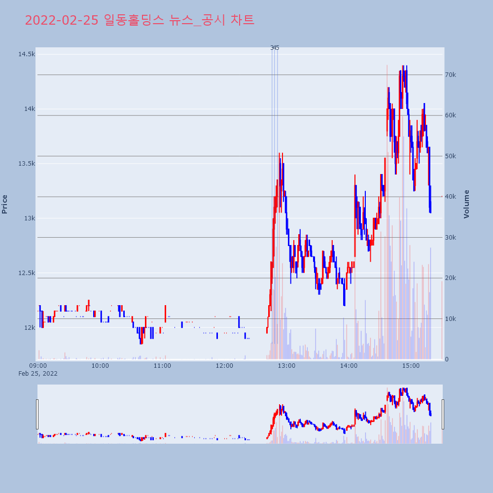 | 5 | 일동홀딩스, +12.66% VI 발동일동홀딩스(000230)가 VI가 발동했다. 전일 대비 | 조선경제 | 일동홀딩스 | 2022-02-25 12:51:14 |