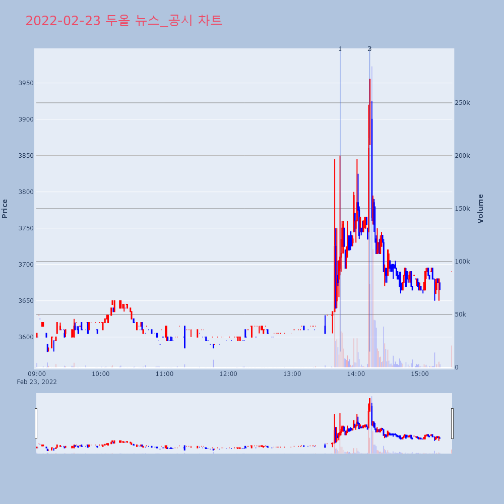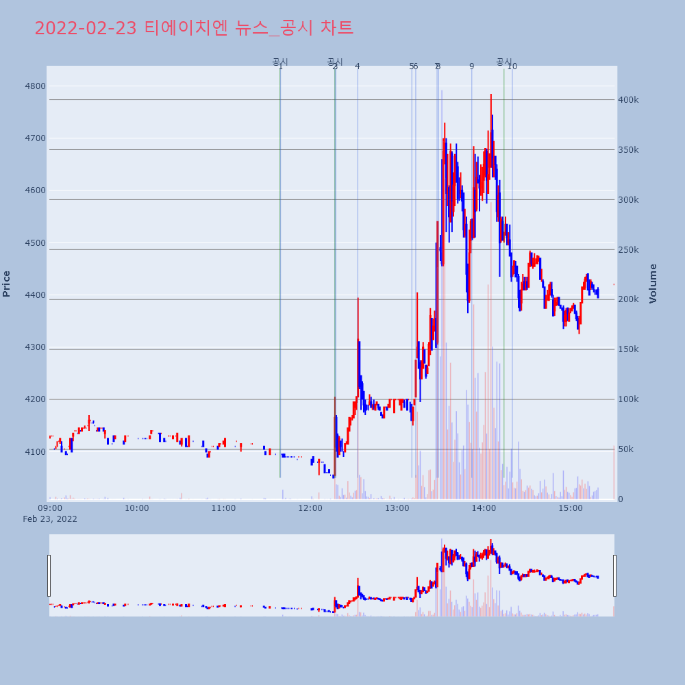 13. 2022.02.23 2022. 02. 23 특징주 하이브 아이에스동서 티웨이항공 뉴파워프라즈마 플리토 코나아이 케이에스피