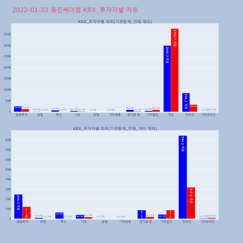 | 외국인 | 380,638 | 245,604 | -135,034 | 8,872,240,750 | 5,674,325,850 | -3,197,914,900 |