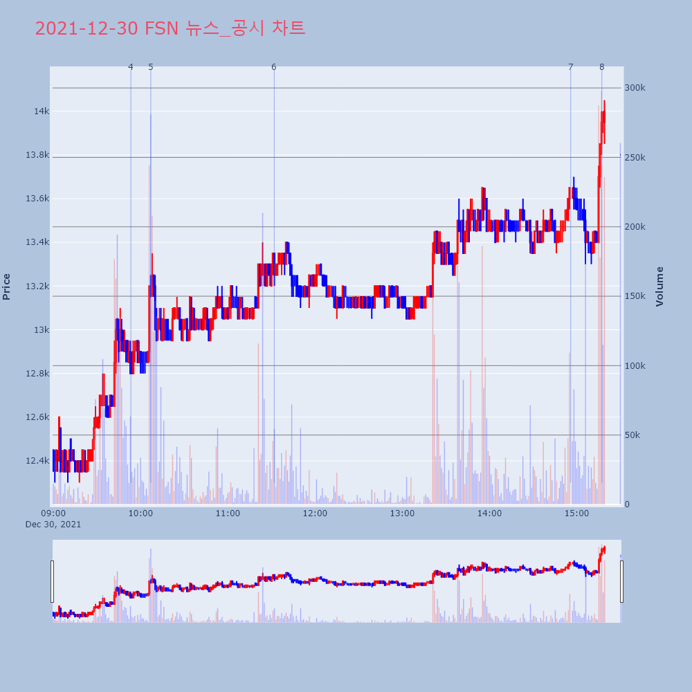 | 8 | FSN, +11.65% 52주 신고가FSN(214270)이 52주 신고가를 경신했다. 전일 | 조선경제 | FSN | 2021-12-30 15:17:16 |