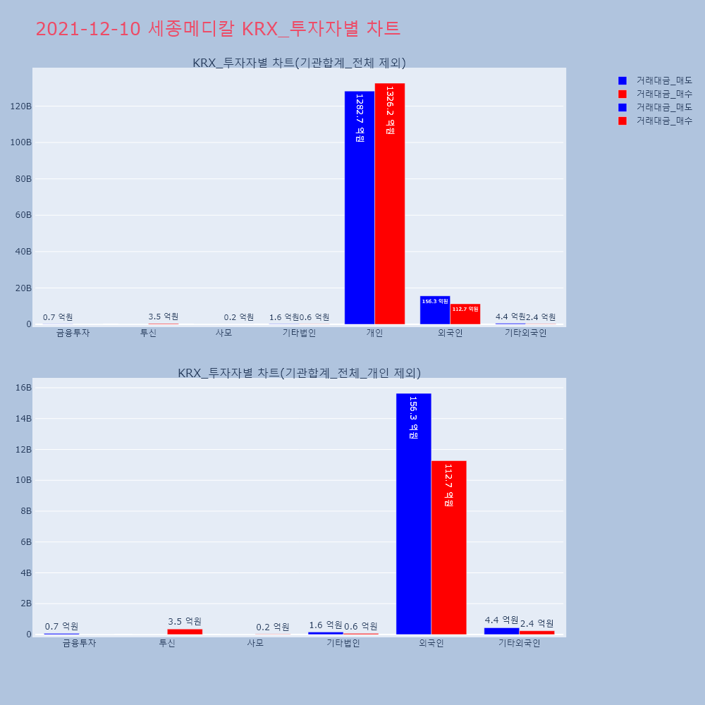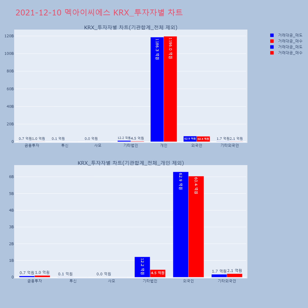 | 투자기관 | 거래량_매도 | 거래량_매수 | 거래량_순매수 | 거래대금_매도 | 거래대금_매수 | 거래대금_순매수 |