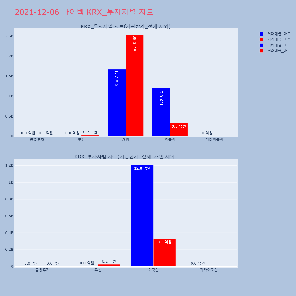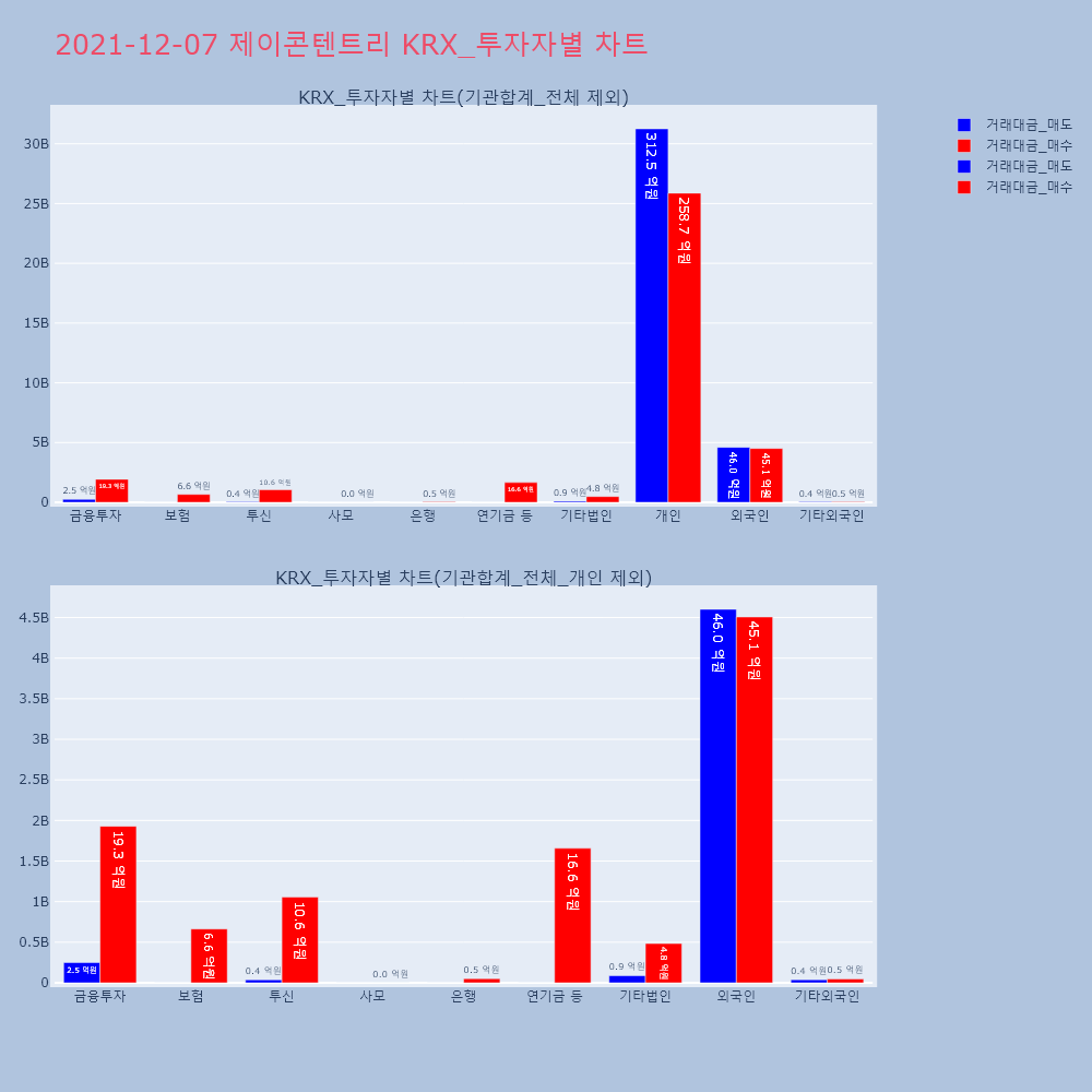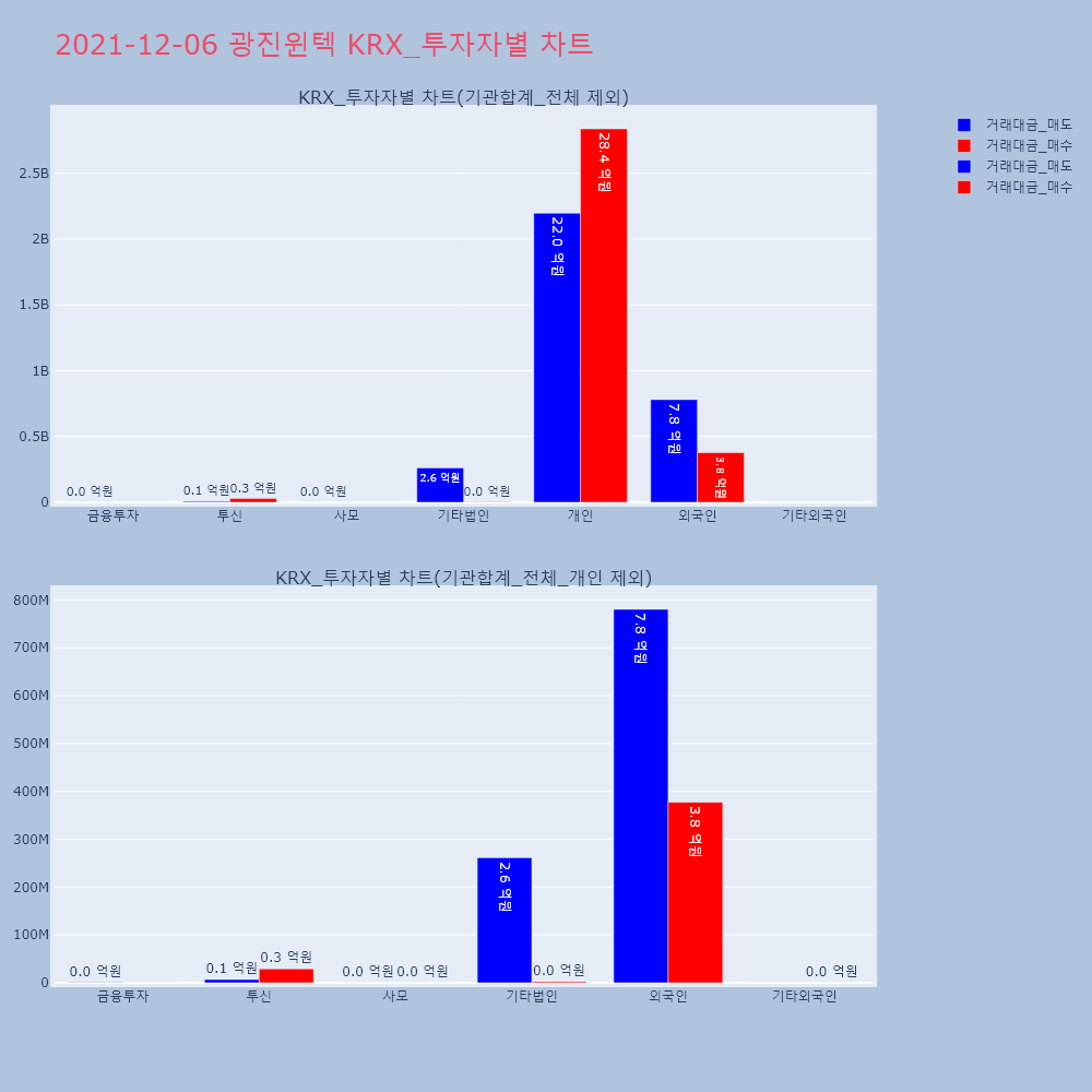 | 투자기관 | 거래량_매도 | 거래량_매수 | 거래량_순매수 | 거래대금_매도 | 거래대금_매수 | 거래대금_순매수 |