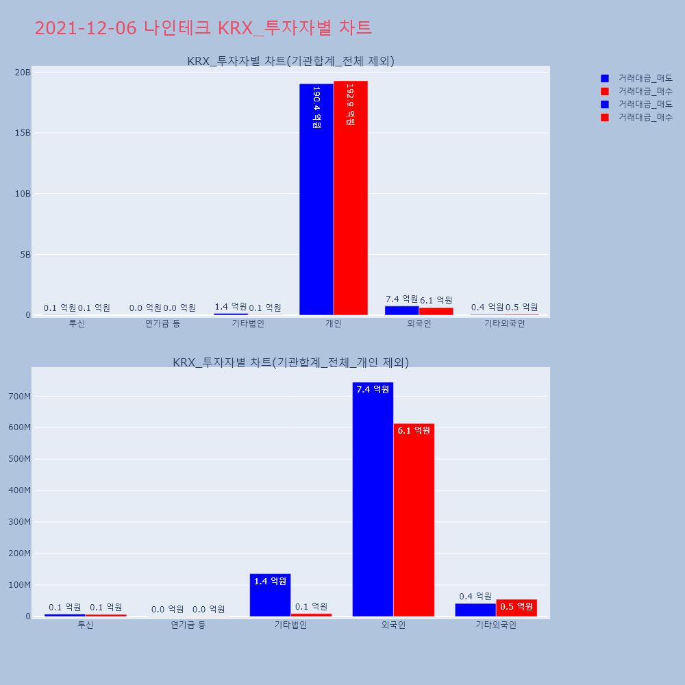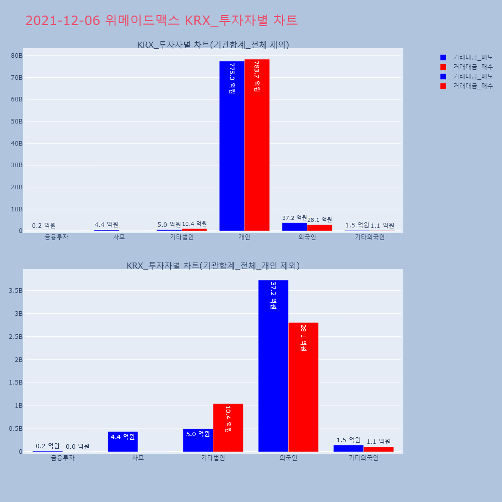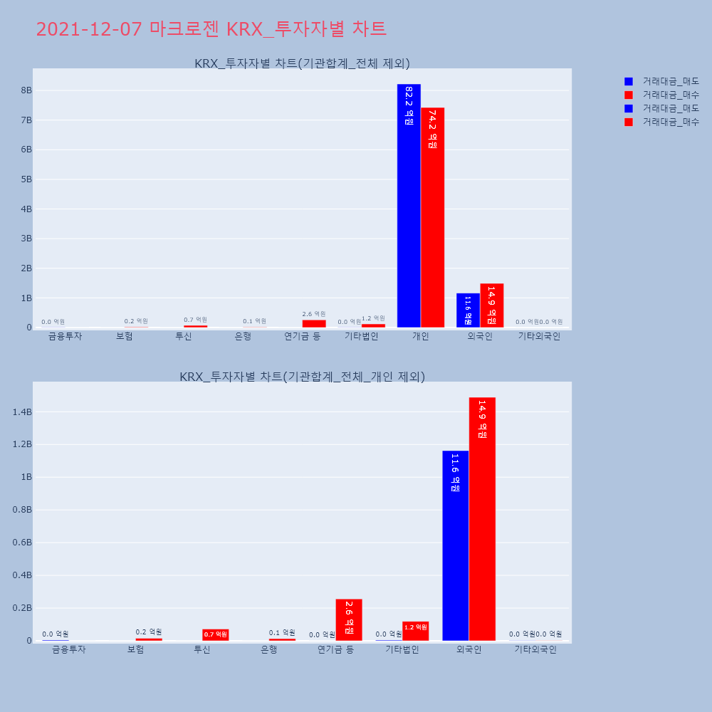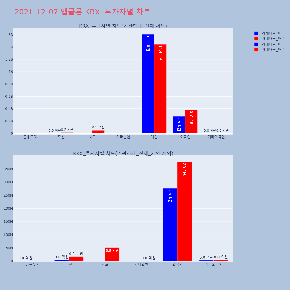 | 투자기관 | 거래량_매도 | 거래량_매수 | 거래량_순매수 | 거래대금_매도 | 거래대금_매수 | 거래대금_순매수 |