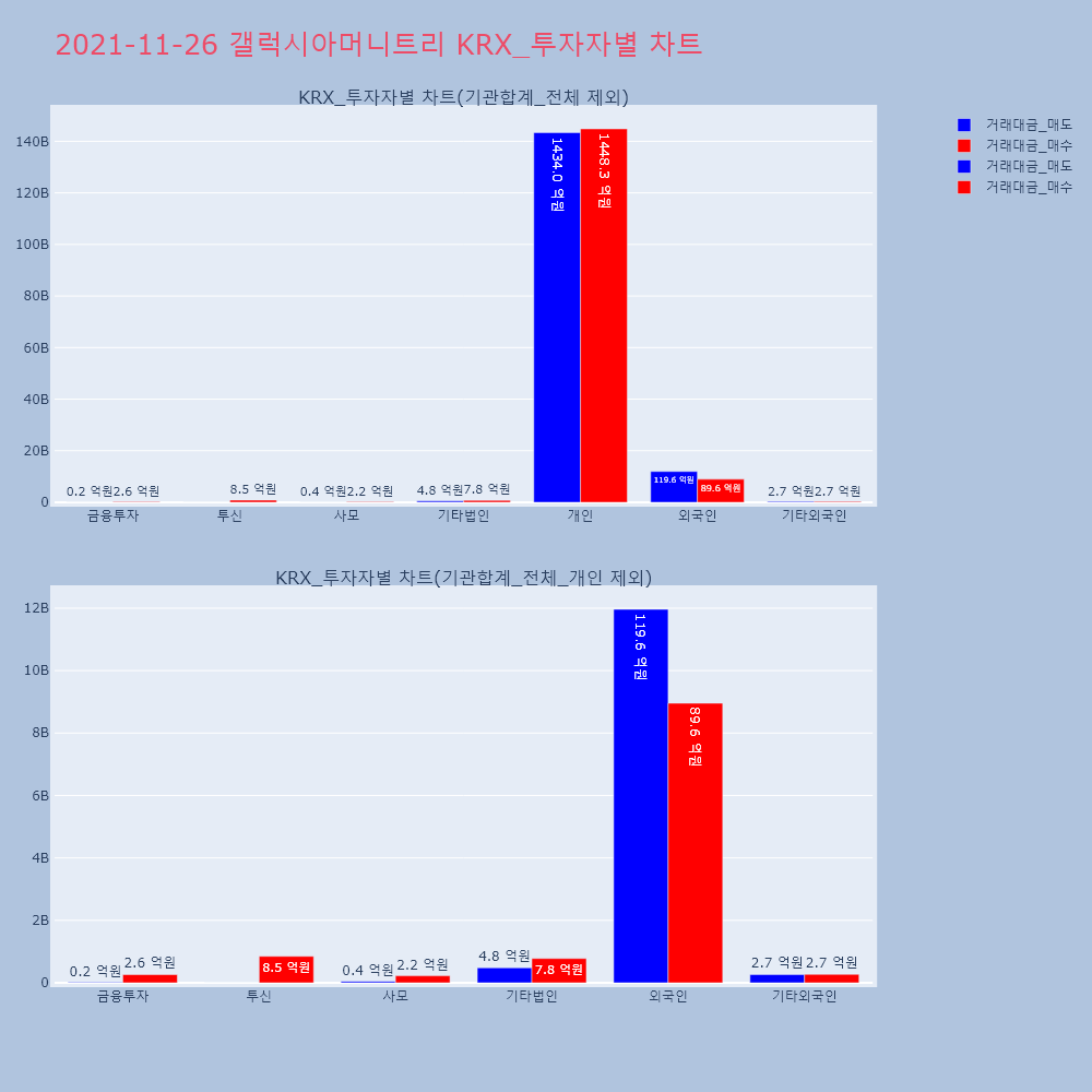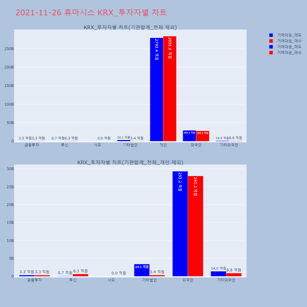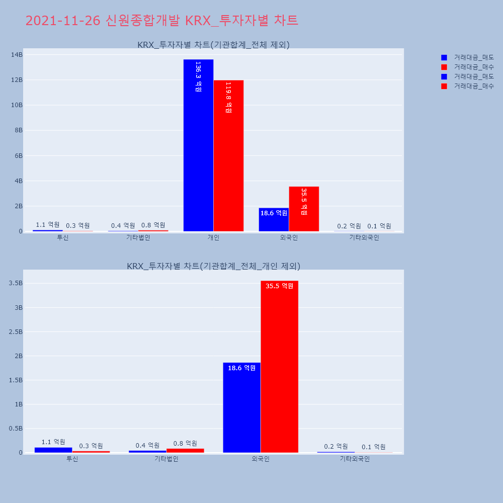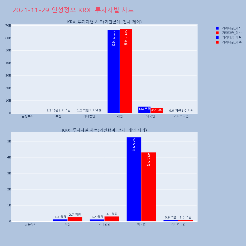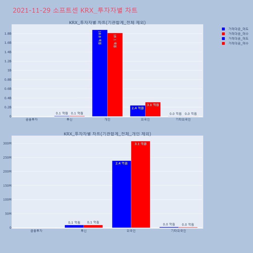 | 투자기관 | 거래량_매도 | 거래량_매수 | 거래량_순매수 | 거래대금_매도 | 거래대금_매수 | 거래대금_순매수 |