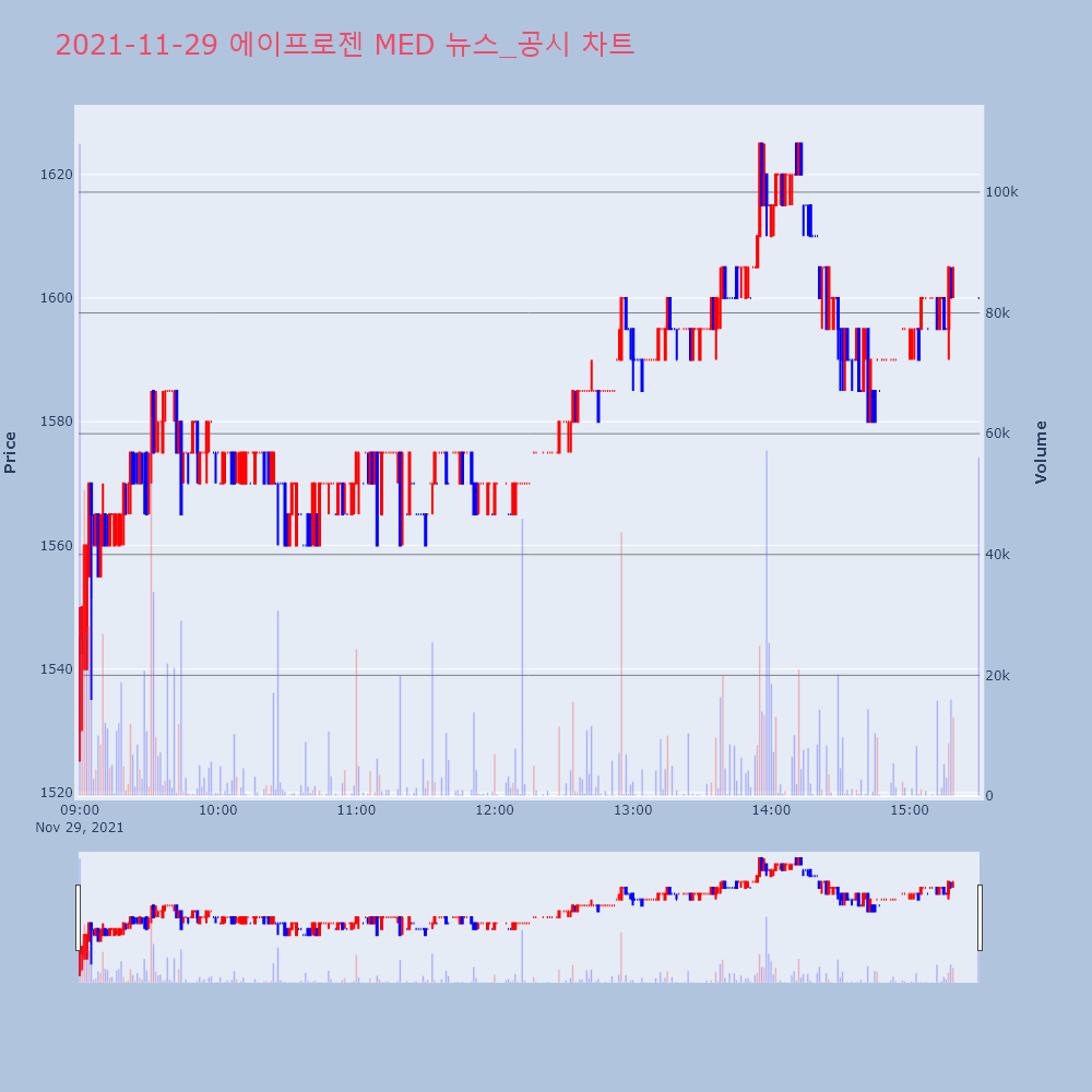 | 20211130 특징주 라파스,드림어스컴퍼니,에치에프알,청담러닝,디에이테크놀로지,알테오젠,휴림로봇,넥스트BT, (0) | 2021.11.30 |