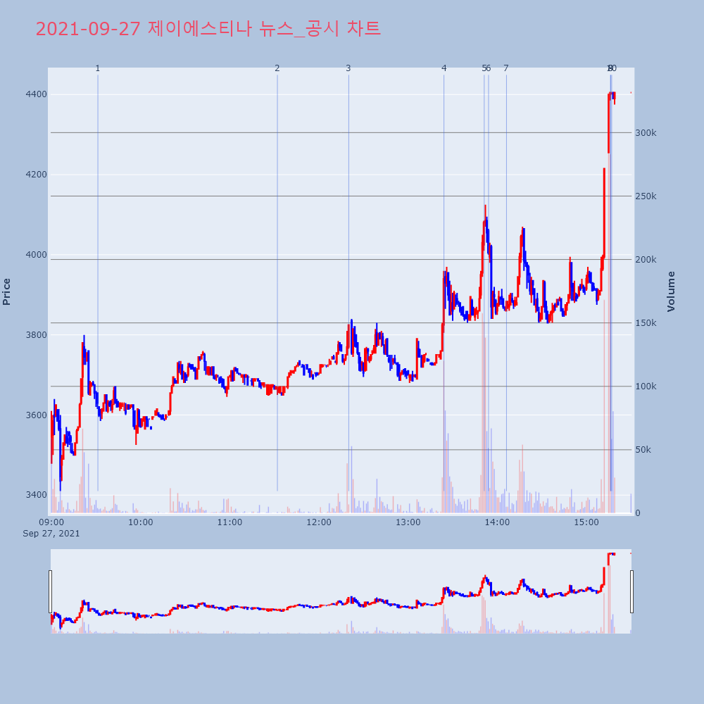 | 8 | [특징주]켐트로스, 배터리 화재방지 첨가제 성장 기대에 ↑▶ 하이스탁론, 선취수수료 없는 월 0.2%대 최저금리 | 이데일리 | 켐트로스 | 2021-09-28 09:08:55 |