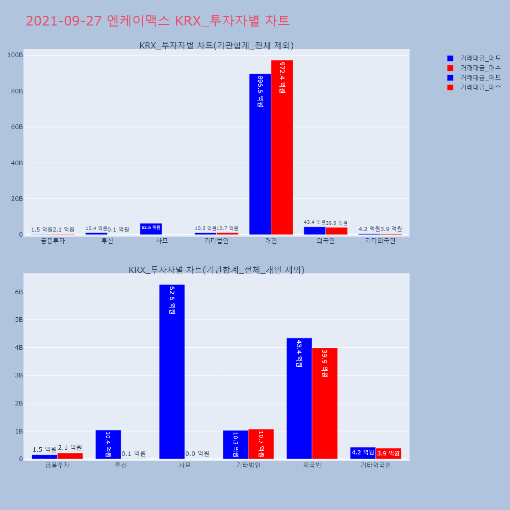 | 투자기관 | 거래량_매도 | 거래량_매수 | 거래량_순매수 | 거래대금_매도 | 거래대금_매수 | 거래대금_순매수 |