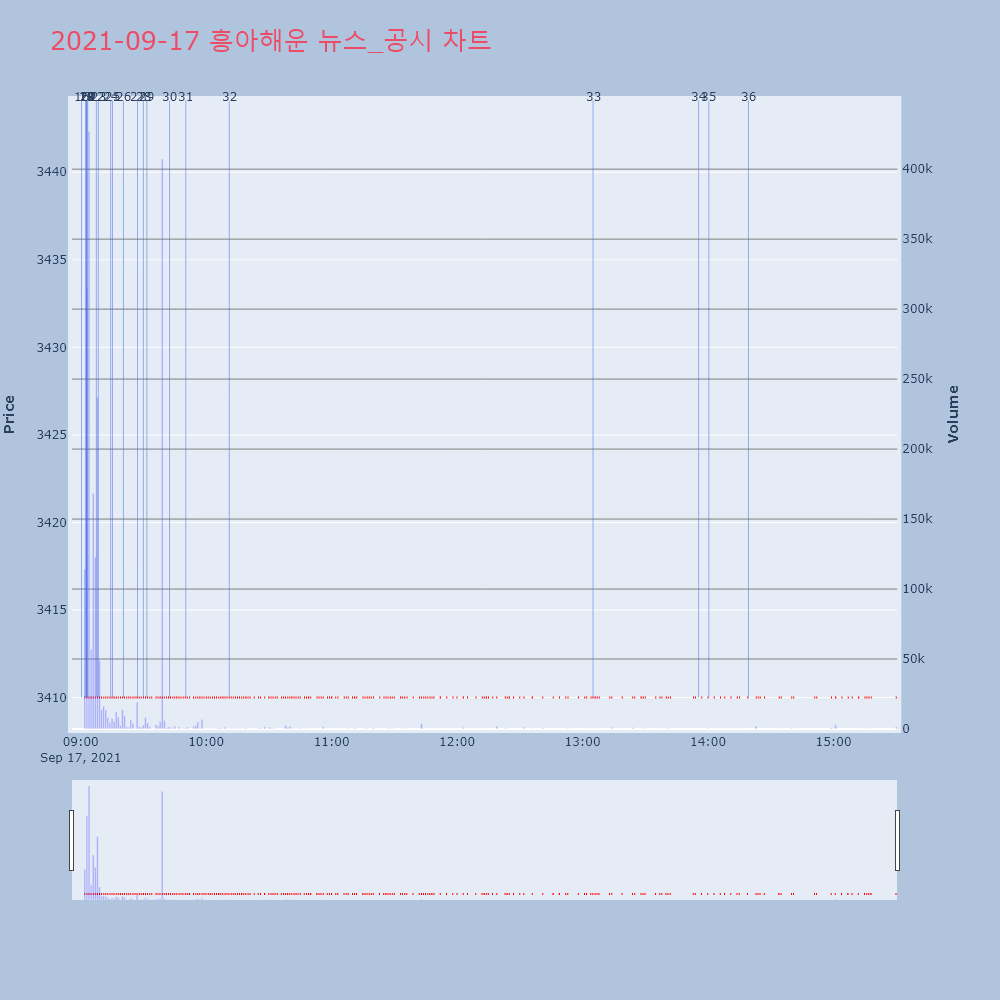 | 5 | 흥아해운(003280) 급등 출발 +27.27%, 나흘째 급등, VI발동 제목 : 흥아해운(003280)급등 출발 +27.27% | 인포스탁 | 흥아해운 | 2021-09-23 09:03:03 |