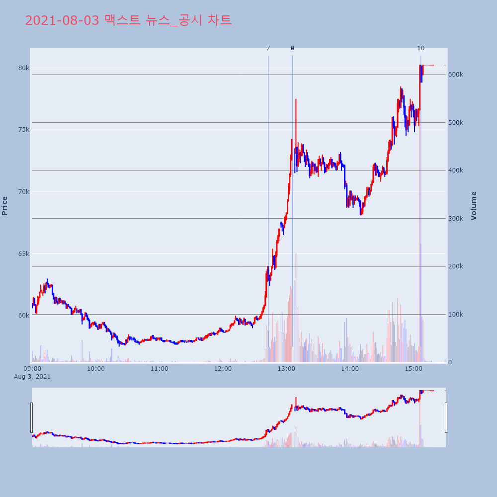 | 9 | '맥스트' 52주 신고가 경신, 단기·중기 이평선 정배열로 상승세◆ 차트 분석- 단기·중기 이평선 정배열로 상승세 | 한경/증권 | 맥스트 | 2021-08-03 13:06:05 |
