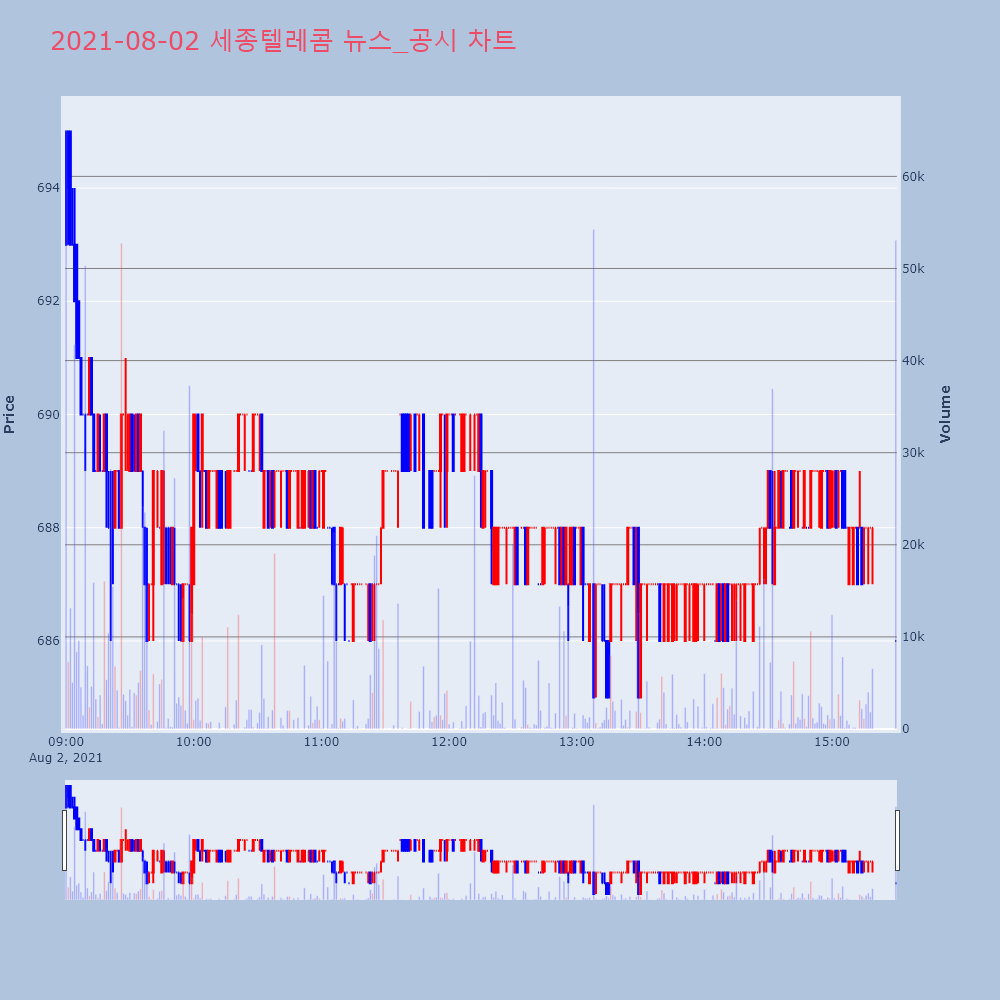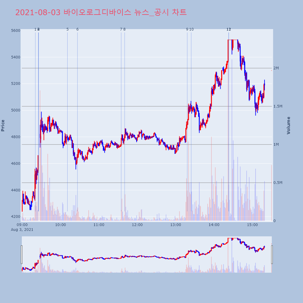 | 4 | 바이오로그디바이스, +9.52% VI 발동바이오로그디바이스(208710)가 VI가 발동했다. 전 | 조선경제 | 바이오로그디바이스 | 2021-08-03 09:25:45 |