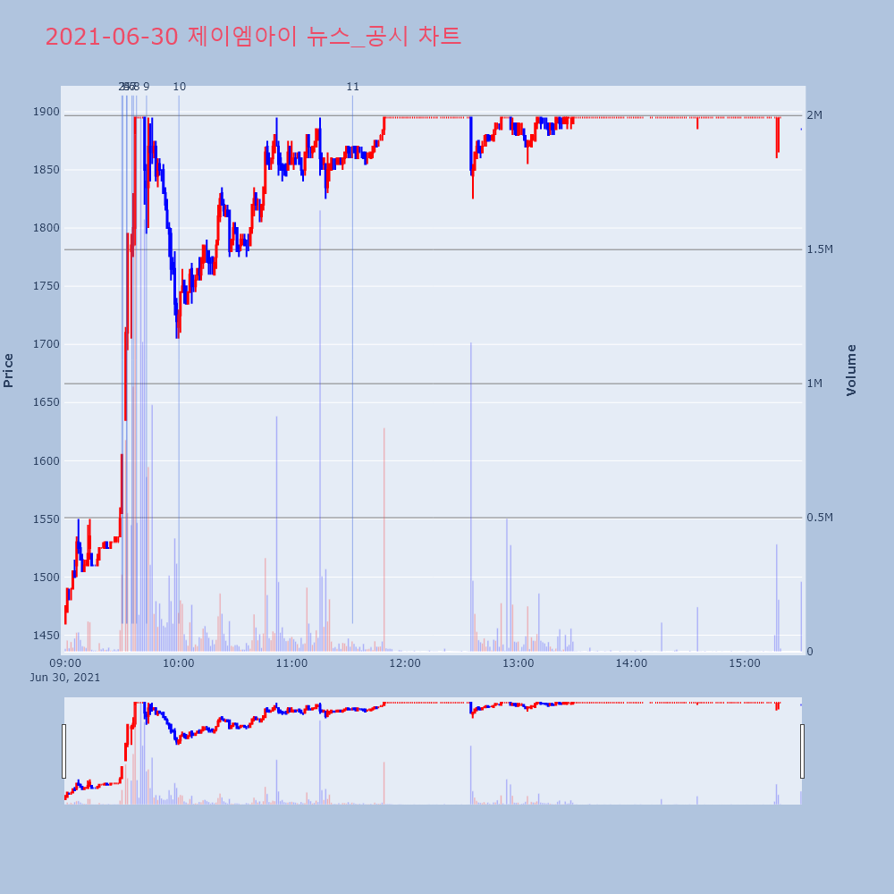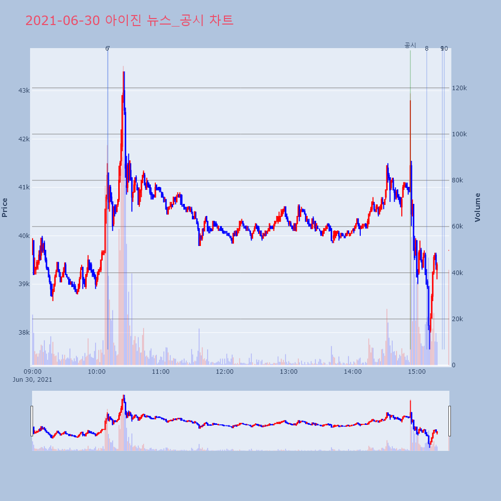 | 11 | 4 | 아이진, +11.07% VI 발동아이진(185490)이 VI가 발동했다. 전일 대비 1 | 조선경제 | 아이진 | 2021-06-29 09:11:52 |