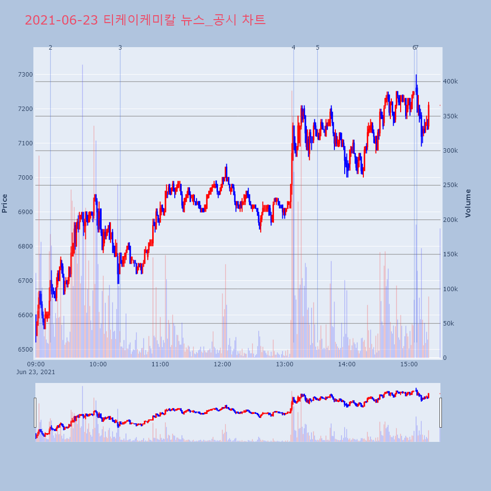 | 9 | 8 | [강세 토픽] 해운 테마, 티케이케미칼 +4.96%, 팬오션 +4.13%[해운] 테마가 강세다. 전일 대비 2.86% 상승세이 | 조선경제 | 티케이케미칼 | 2021-06-25 09:07:43 |