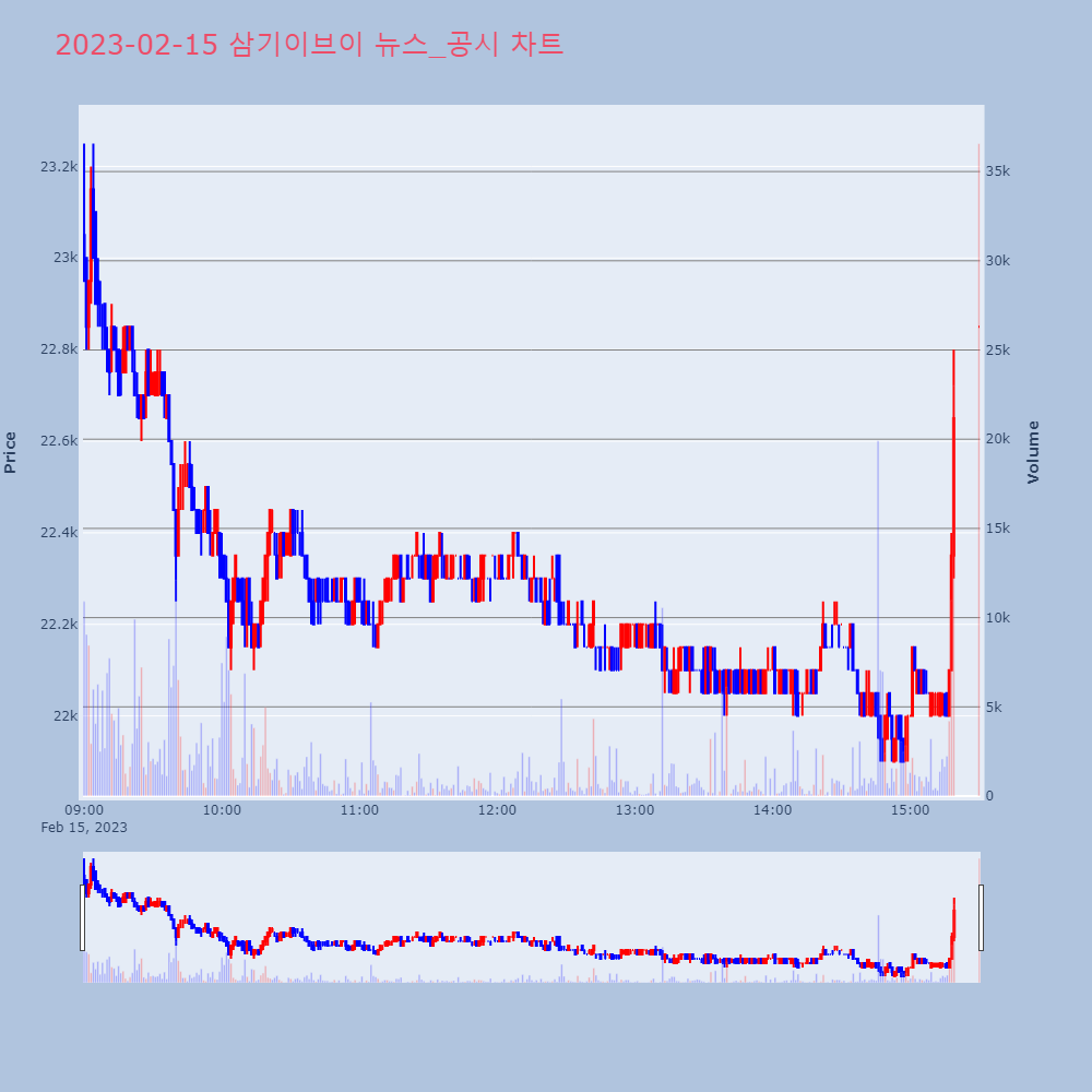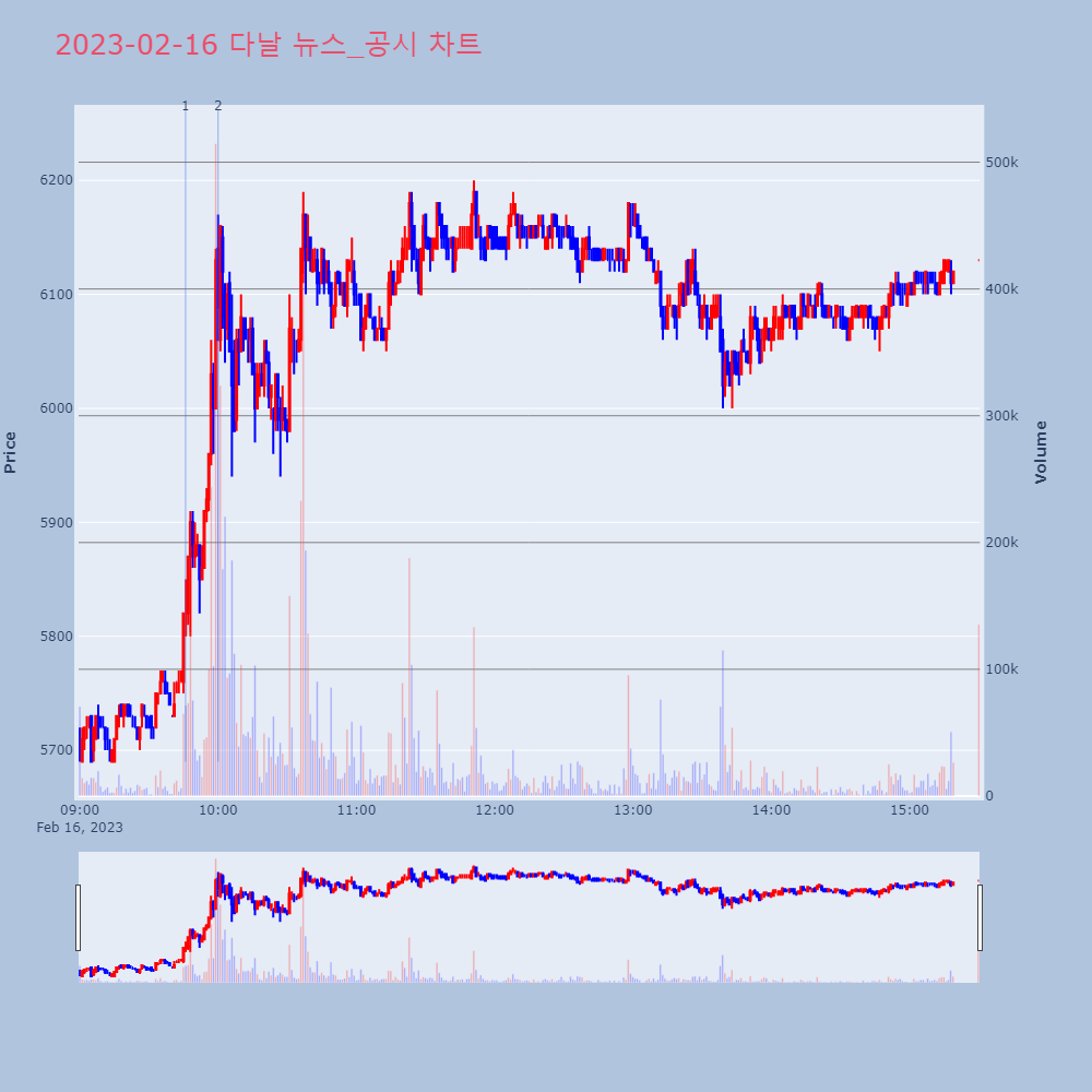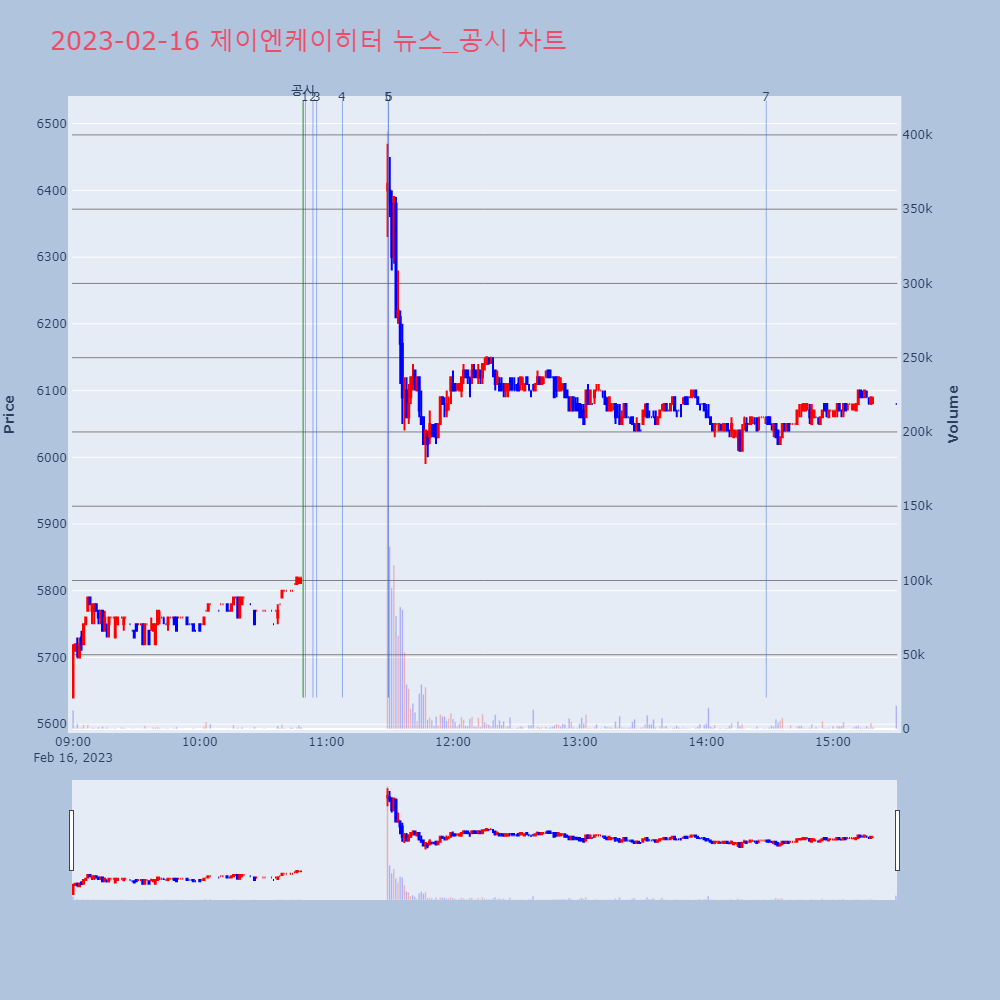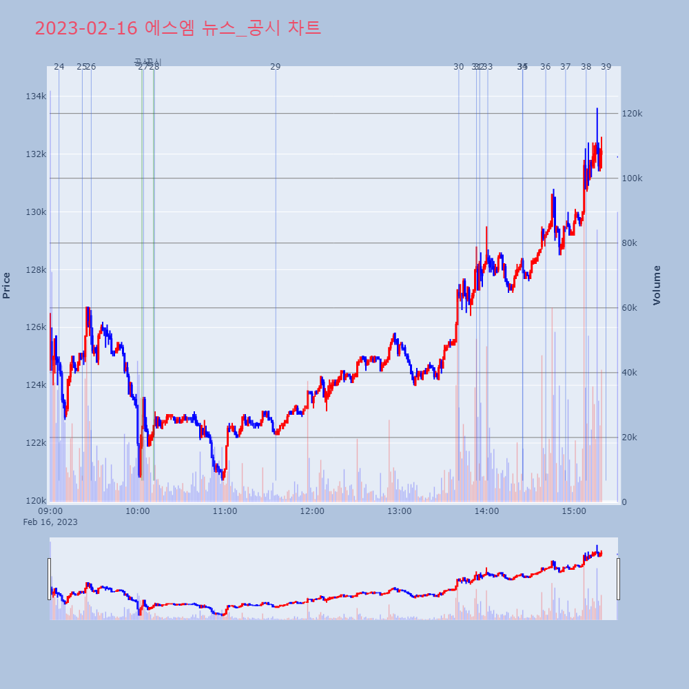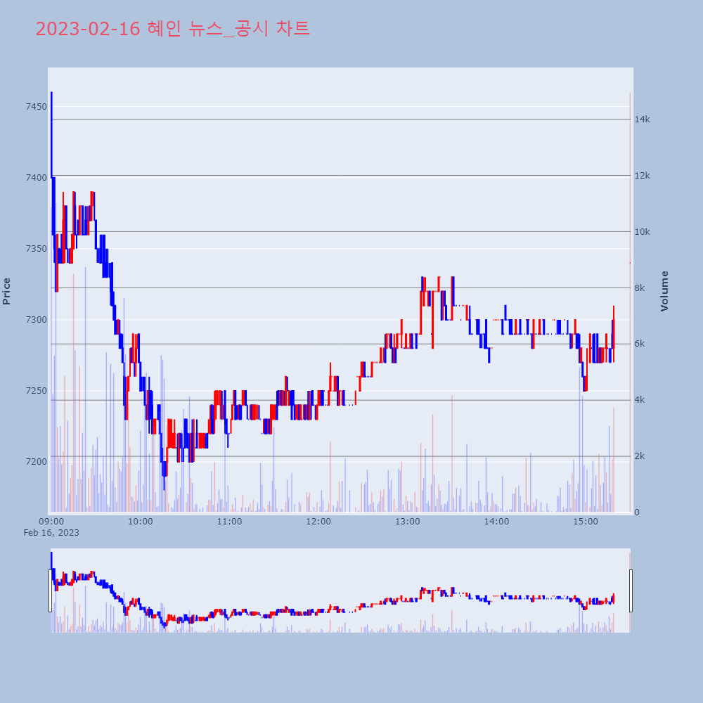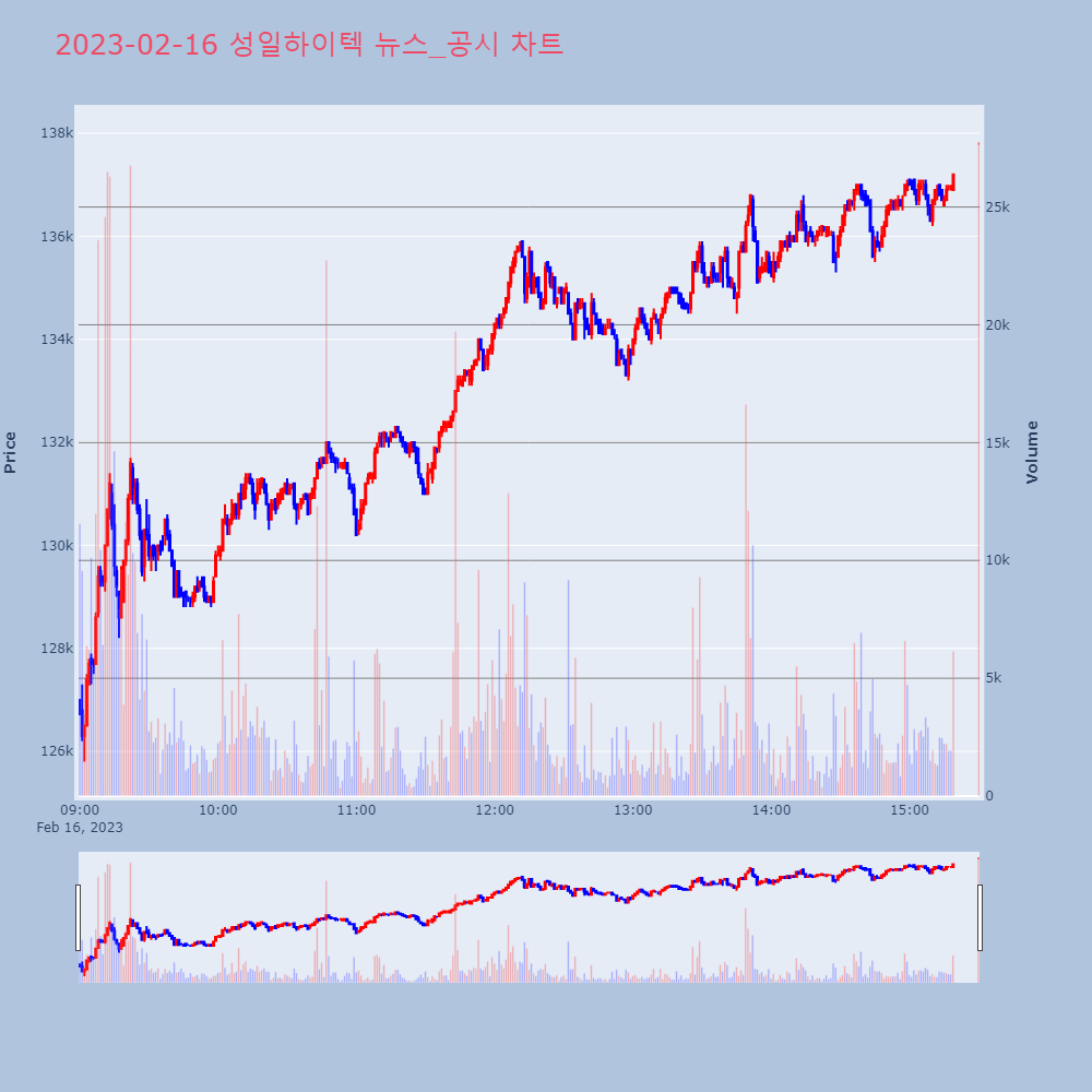 | 2023-02-16 17:16:00 | 20230216800750 | 매출액또는손익구조30%(대규모법인은15%)이상변경 |